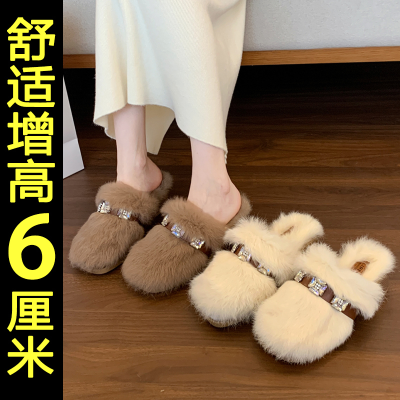 厚底毛毛拖鞋女外穿2025新款秋冬季时尚百搭网红超火增高包头拖鞋