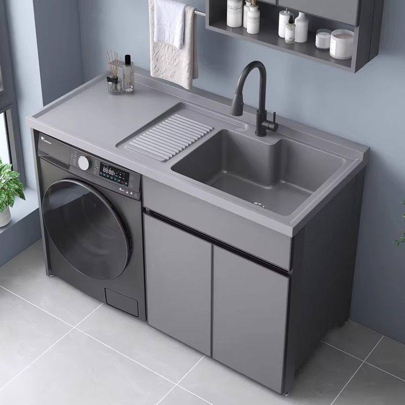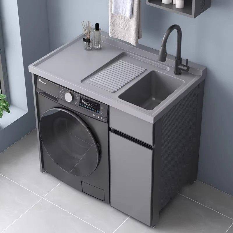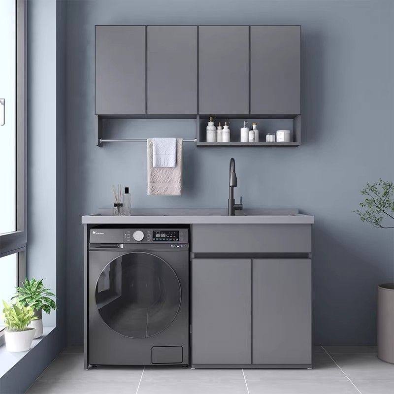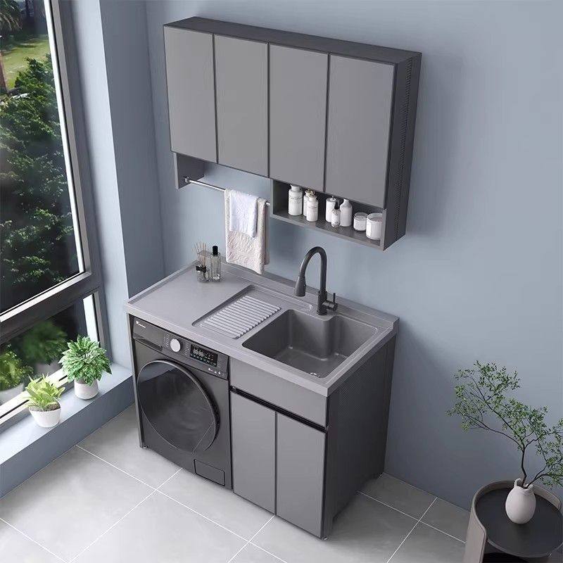 阳台洗衣机柜组合太空铝洗衣机伴侣带搓衣板一体盆可定制洗衣