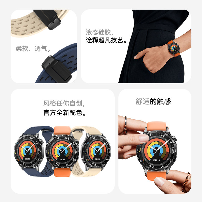 适用华为手表gt6表带watch5透气款磁吸扣硅胶腕带新款智能非凡大师腕表链4/3/2pro亲肤高级男女运动buds便捷e