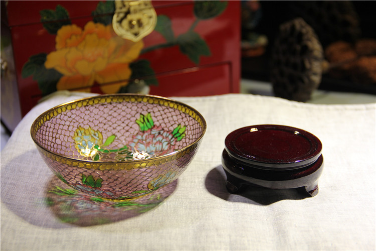 正宗老北京景泰蓝掐丝珐琅库存老货招财脱胎透明蓝碗工艺品摆件