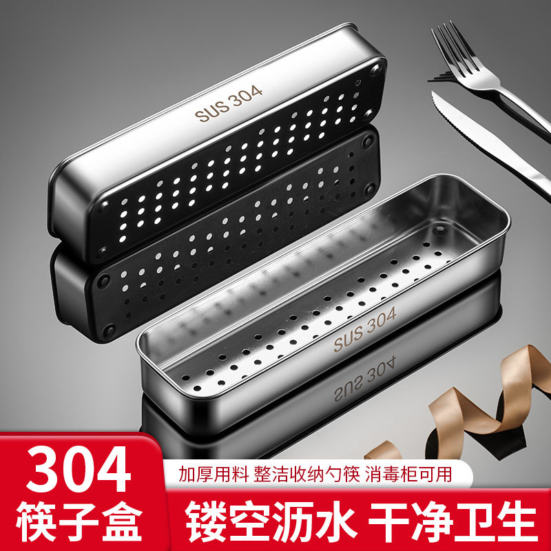 消毒柜筷子盒笼304不锈钢筷子篮家用沥水篓置物架平放餐具收纳盒