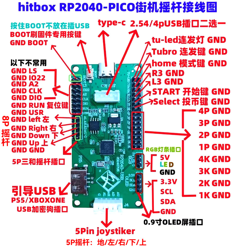 树莓派摇杆芯片绿板电脑PS4安卓HITBOX线材街霸拳皇格斗畅玩游戏