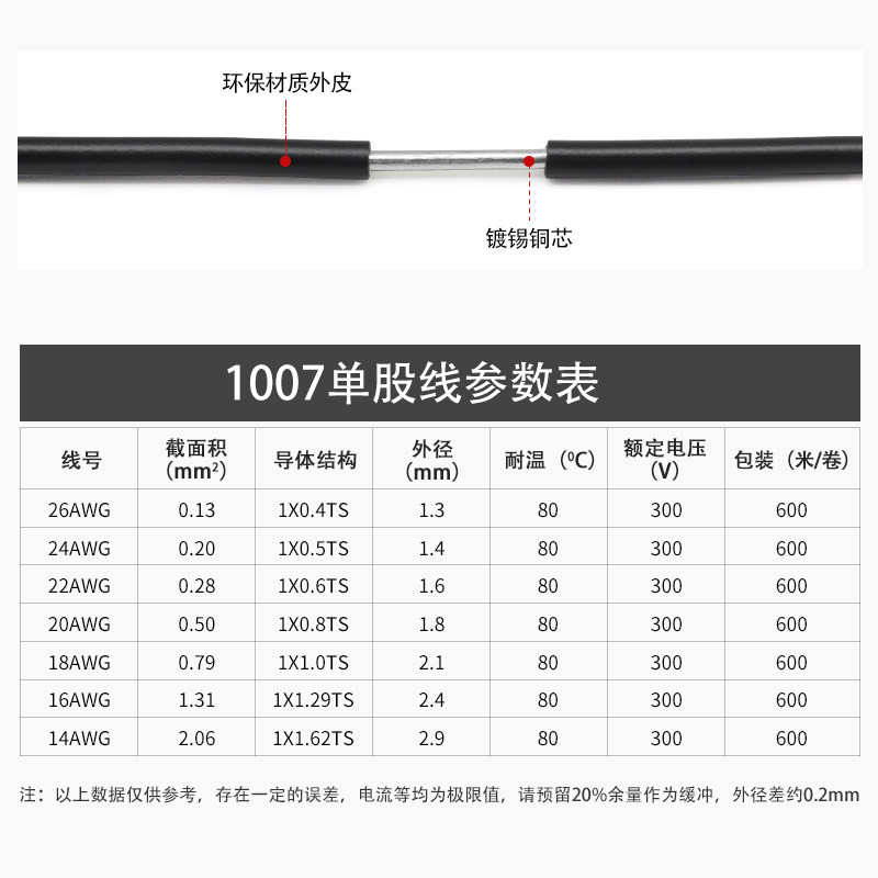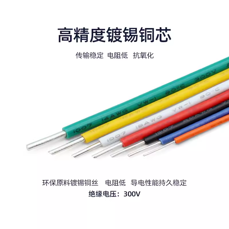 美标1007电子线铜线单芯线镀锡铜电焊线连接线绝缘阻燃电线信号线