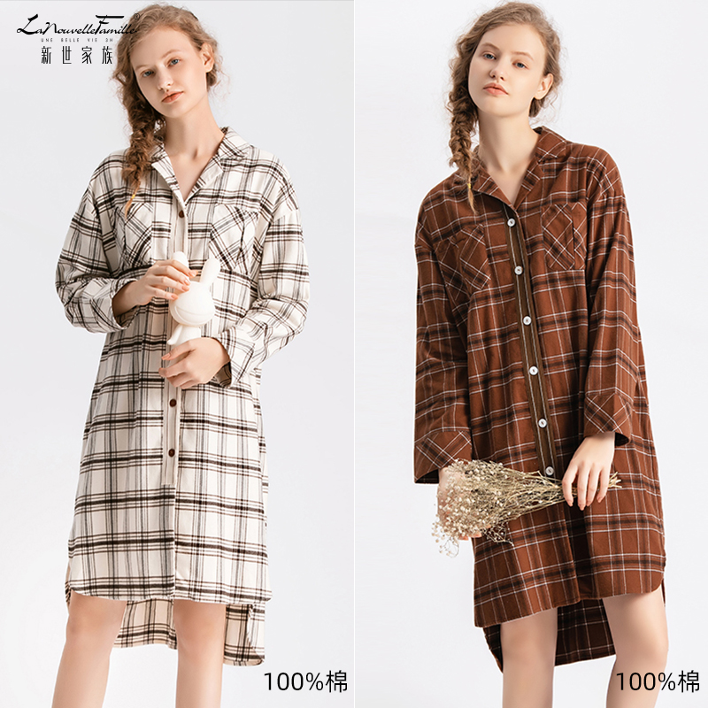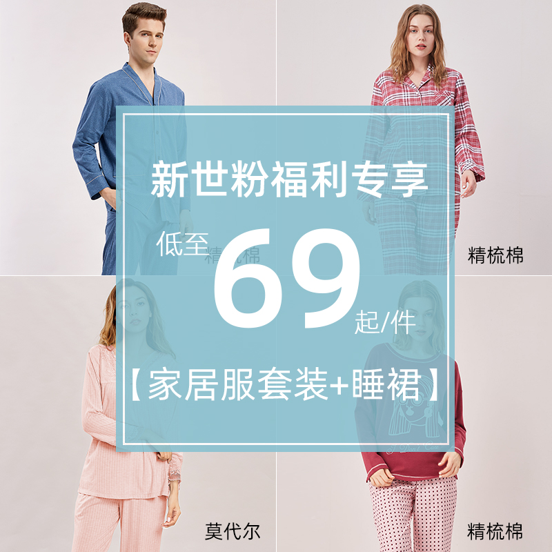 【断码清仓】新世家族春秋睡衣女士睡裙长袖短裤家居服秋季套装男