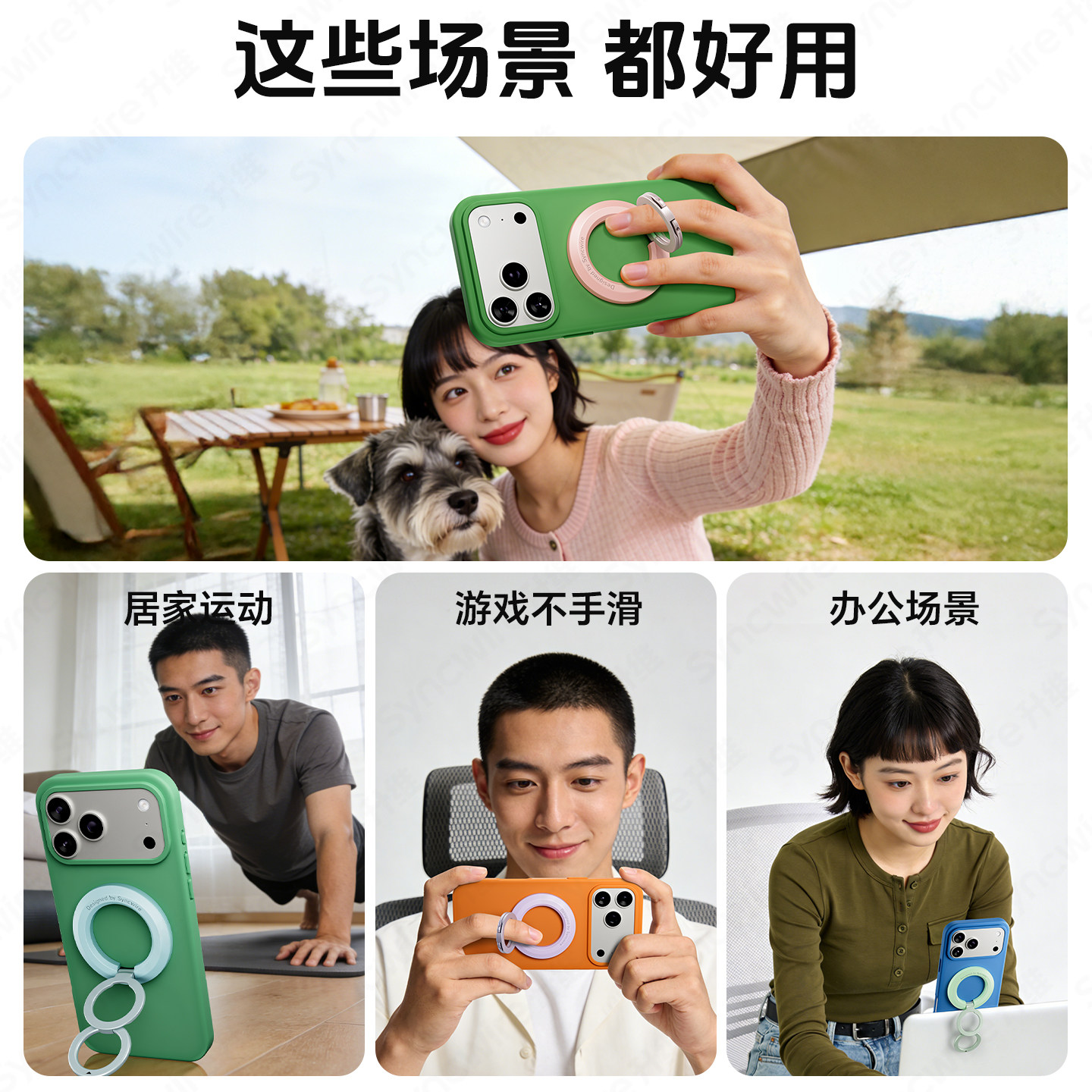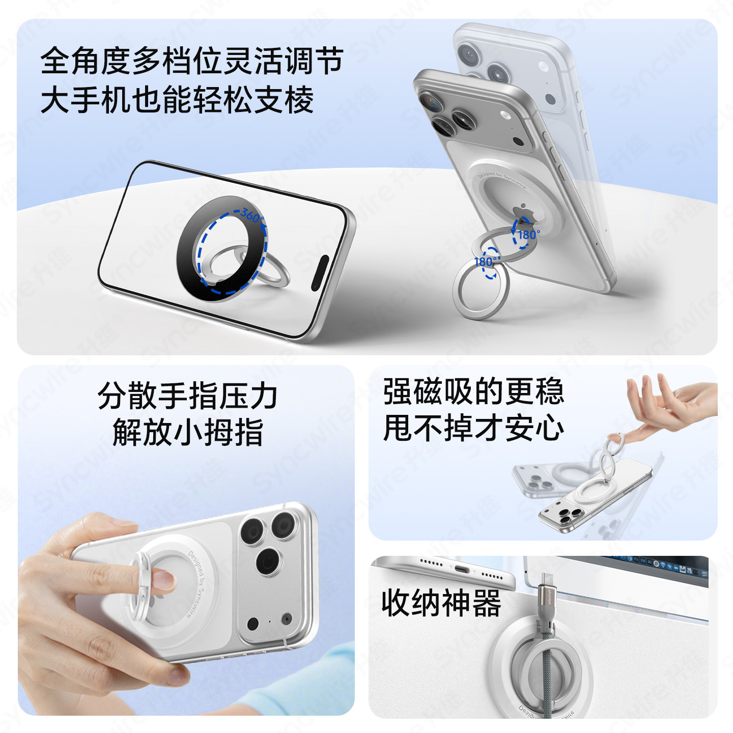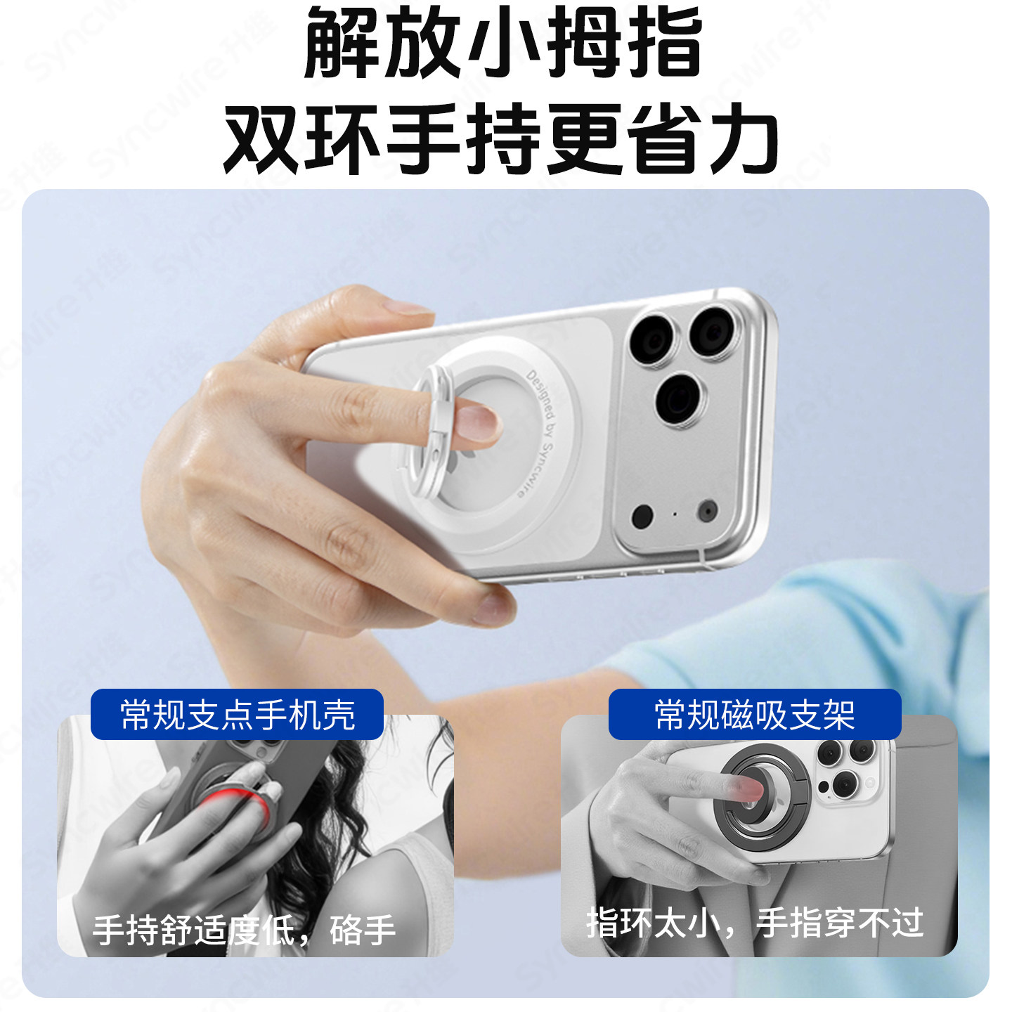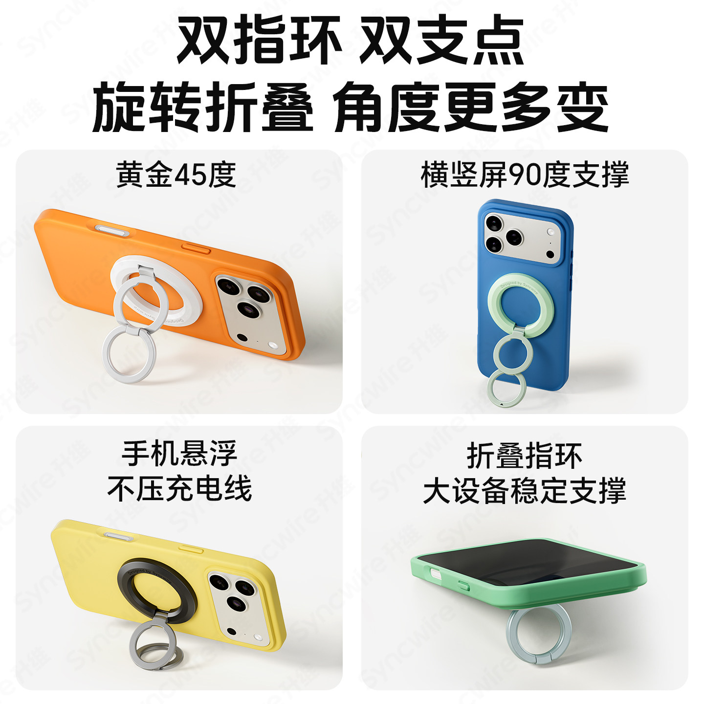 升维双环磁吸手机支架甜甜圈双面指环扣MagSafe吸磁新款苹果17平板ipad专用车载桌面便携拍摄vlog神器气囊壳