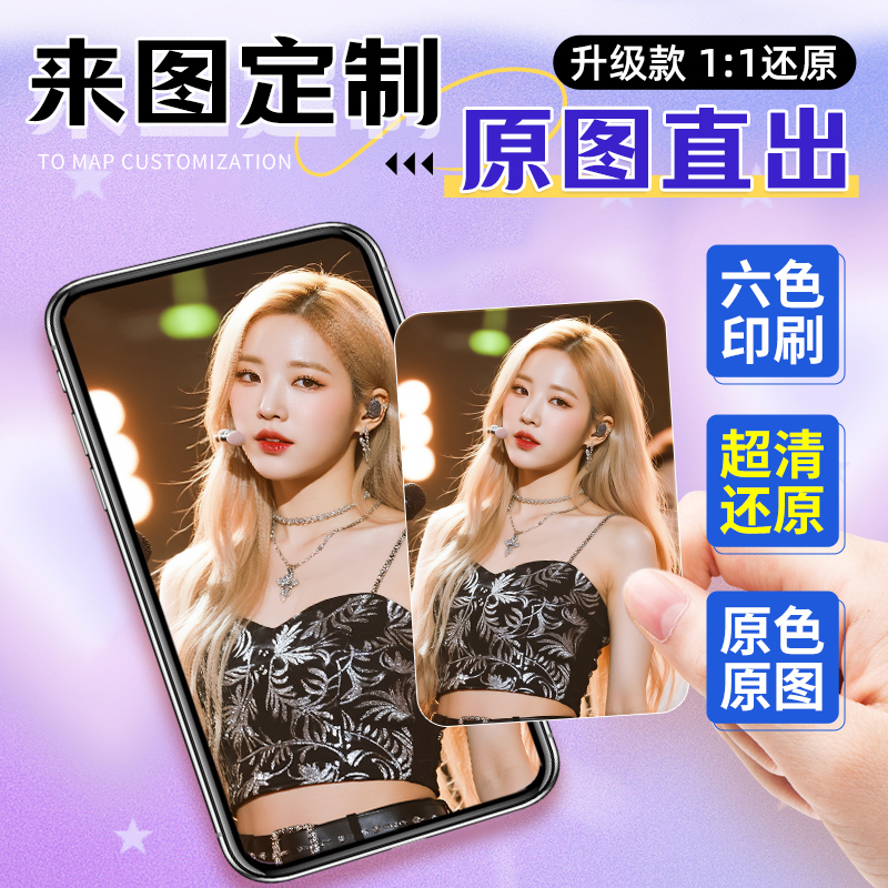 自印小卡定制双面来图打印照片小卡明星应援物料加厚亮膜哑膜方卡定制硬卡diy爱豆二次元韩风专辑款式不限