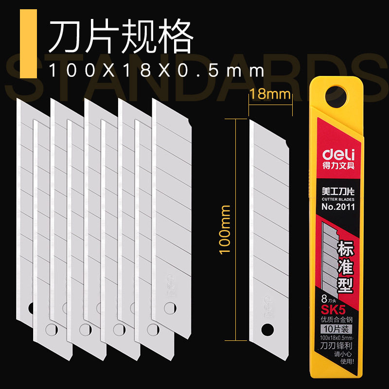 得力2011美工刀刀片刀具壁纸刀片墙纸刀片大号小号手工刀片割纸刀拆快递刀神器开箱刀加厚工业用批发10盒装