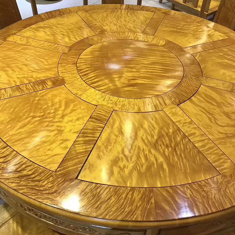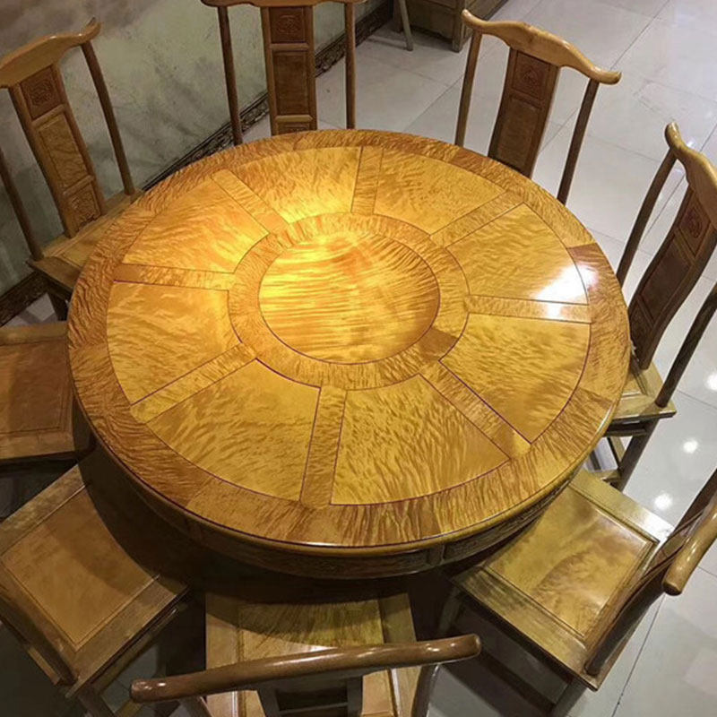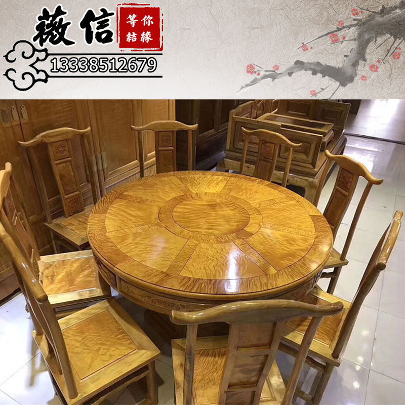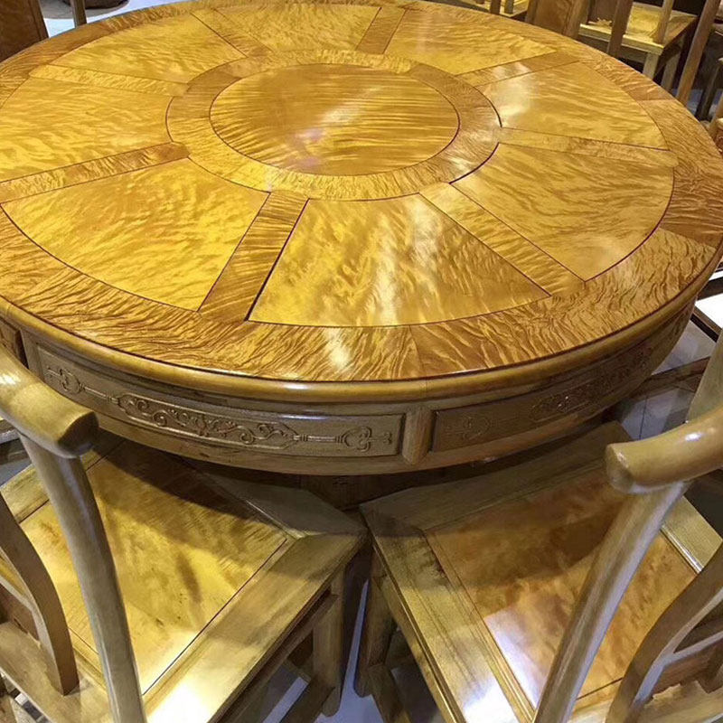 金丝楠木餐桌大叶楠餐桌七/九A件套满水波圆形住宅家具红木摆件