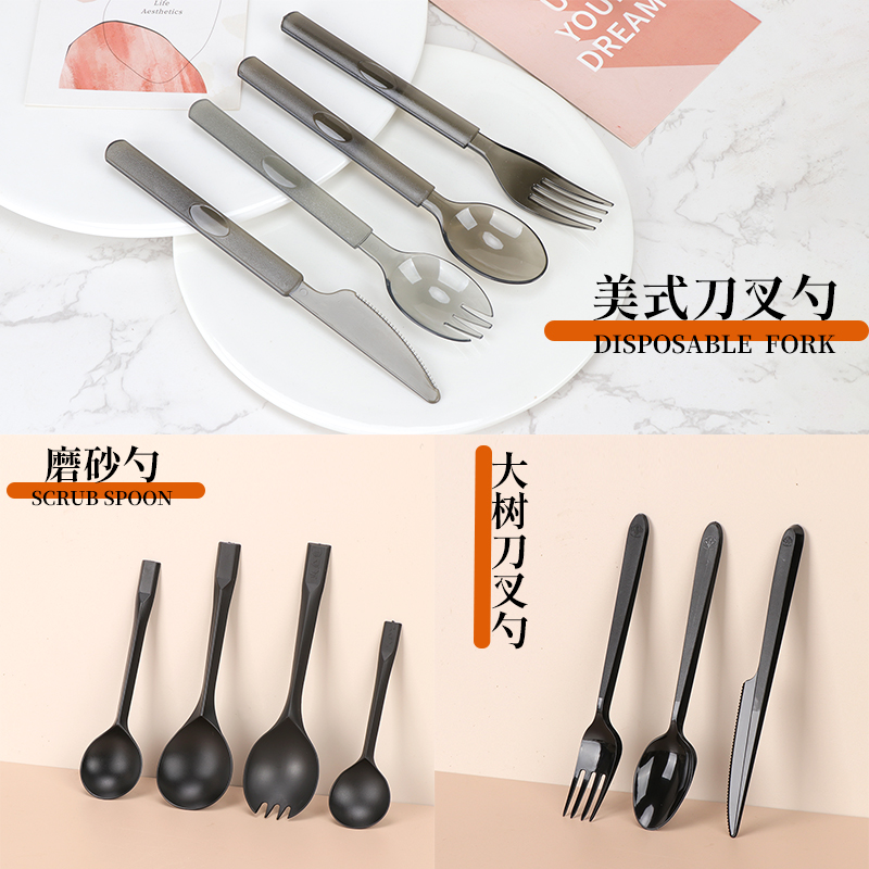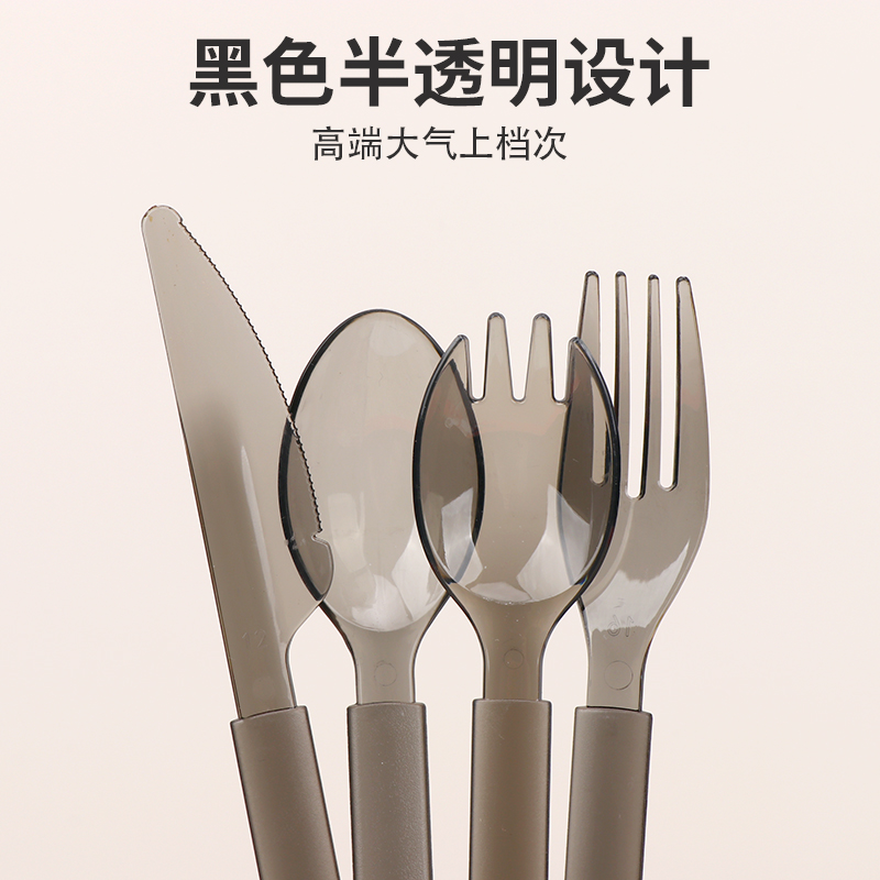 加厚塑料一次性叉子饭勺透明西餐叉甜品刀叉汤勺外卖餐具套装商用