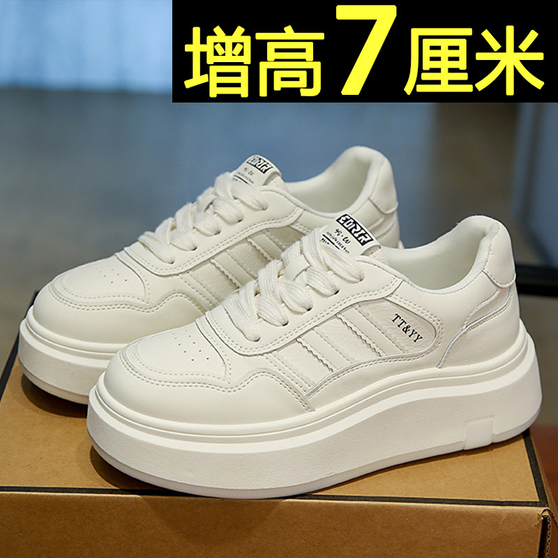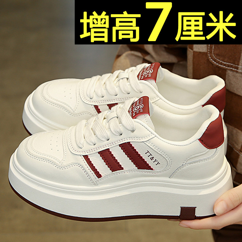 内增高女鞋2025新款春季爆款松糕小白鞋百搭厚底时尚休闲运动板鞋