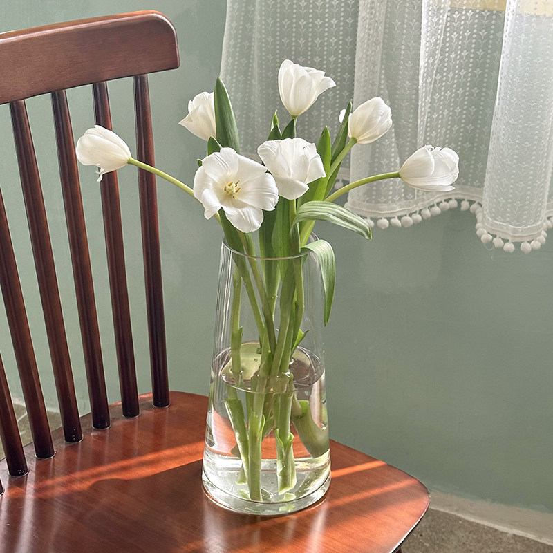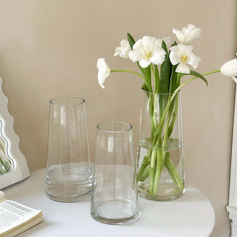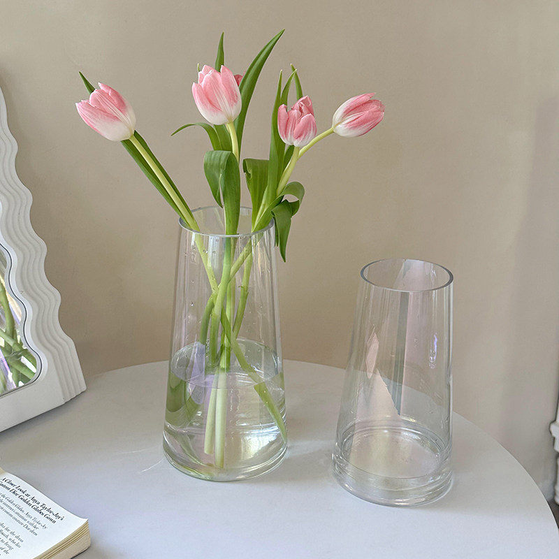 轻奢网红透明玻璃小花瓶摆件客厅插花ins风高级感简约郁金香水养