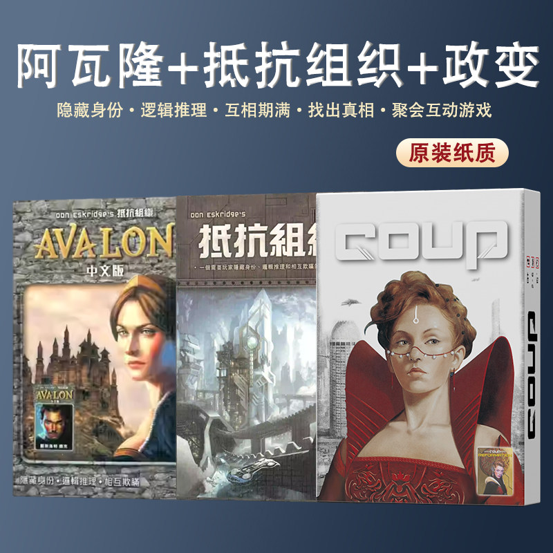 阿瓦隆桌游卡牌中文AVALON2亚瑟加强版抵抗组织合集政变COUP聚会