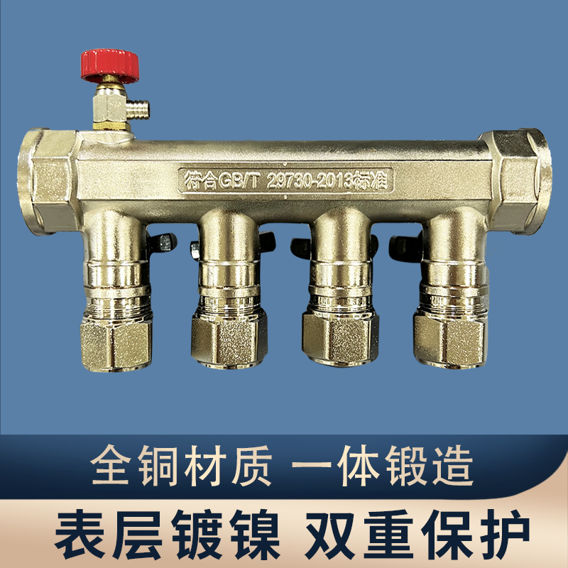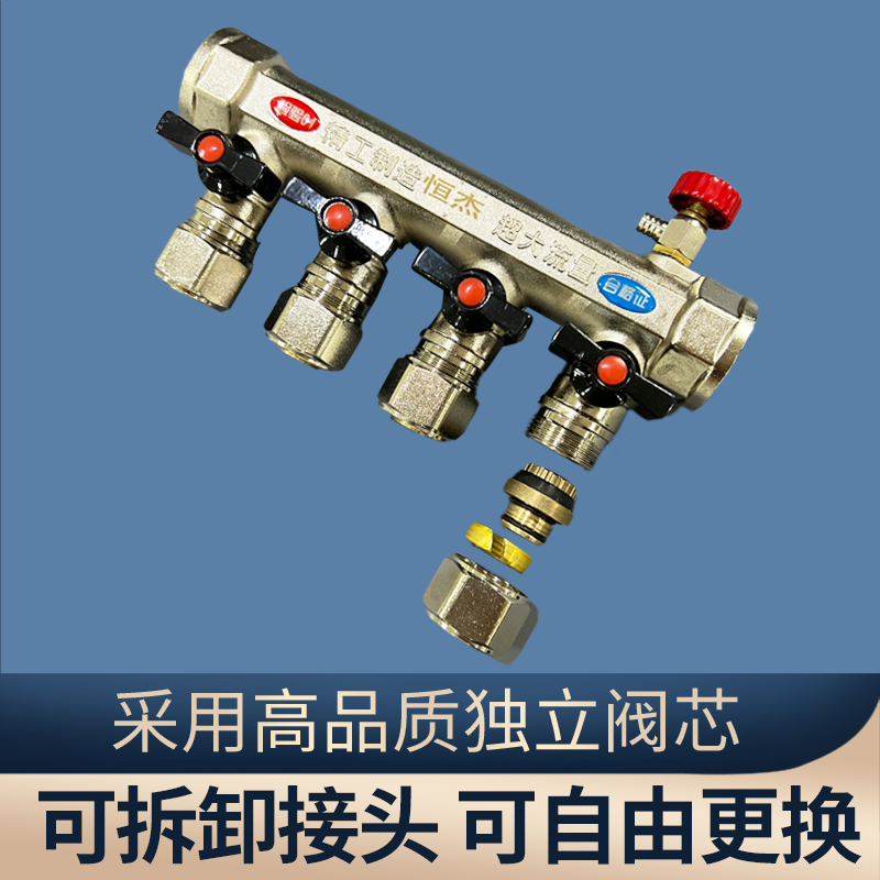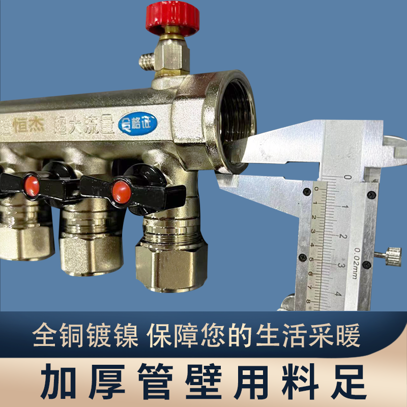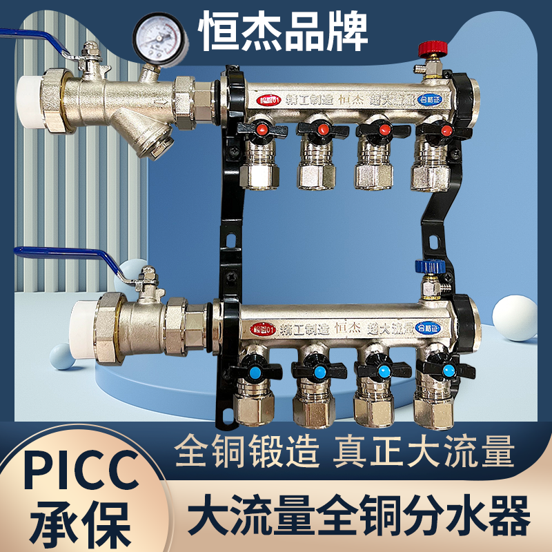 恒杰正品大流量地暖分水器地暖地热暖气阀门全铜地暖分水器大流量
