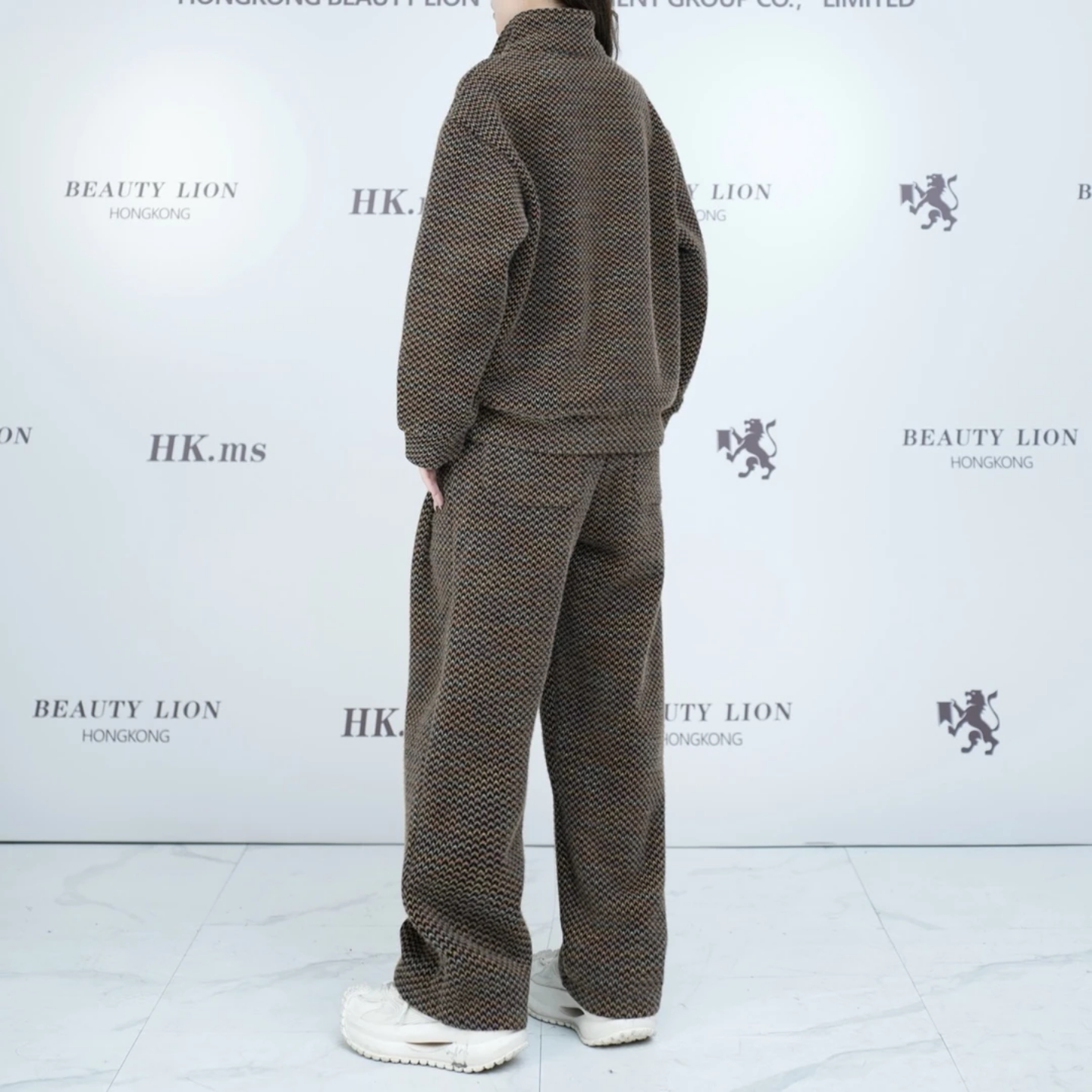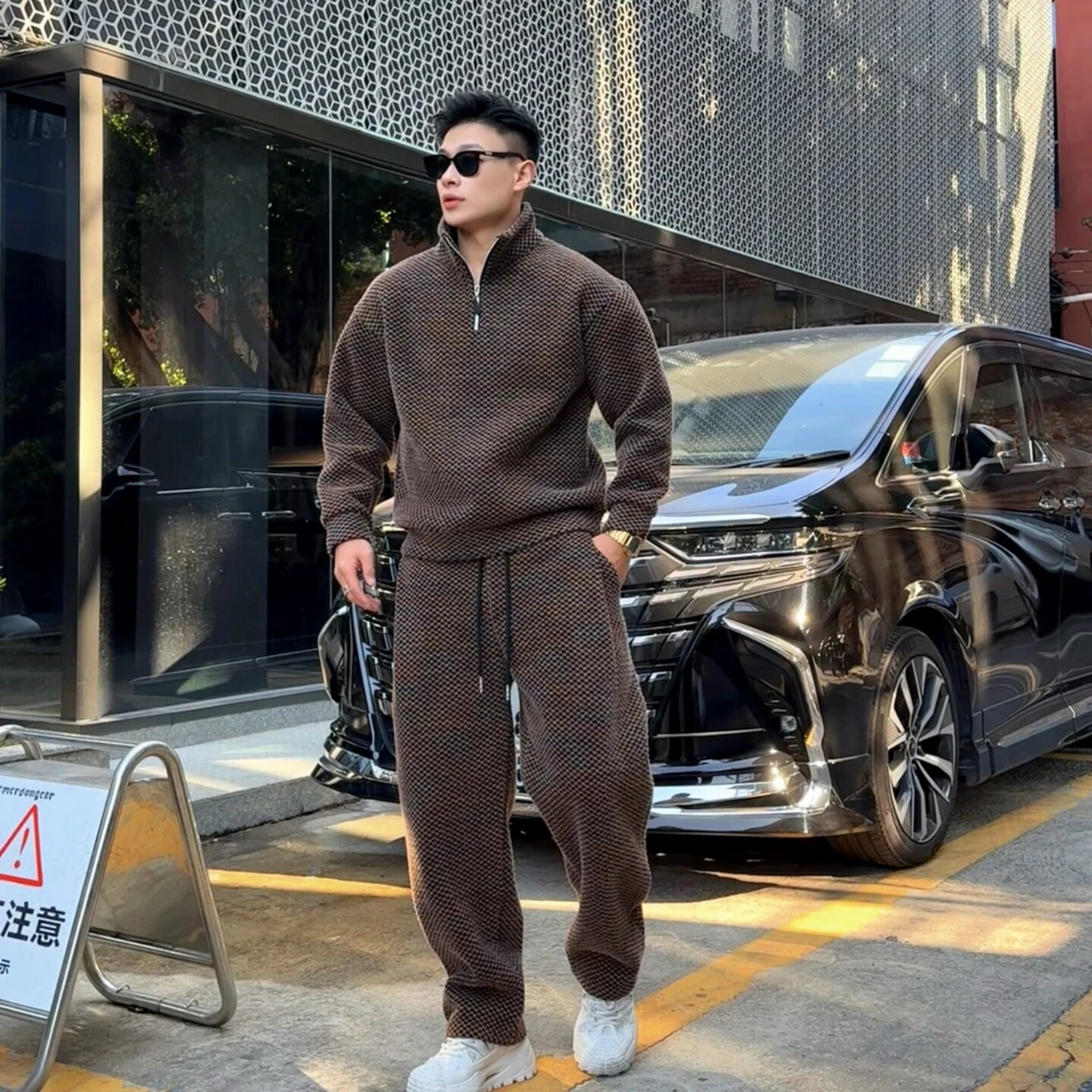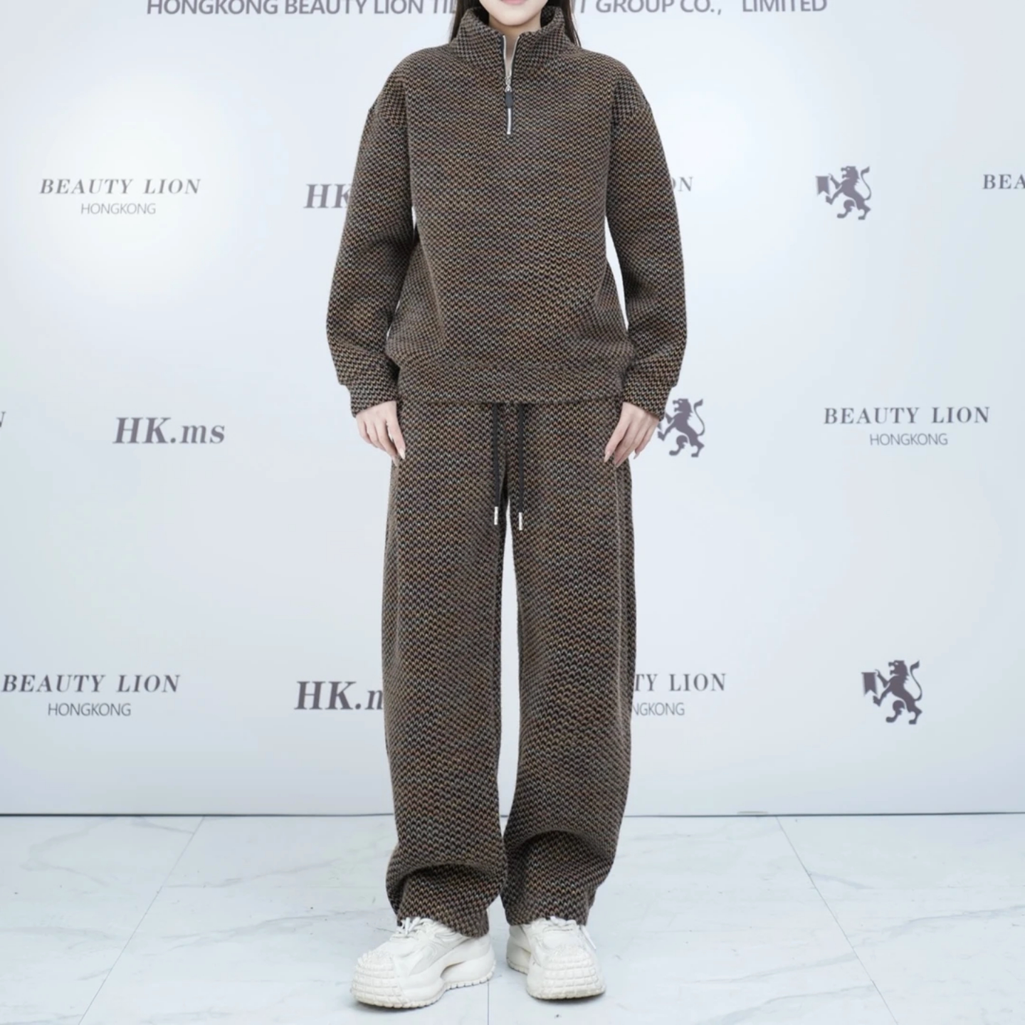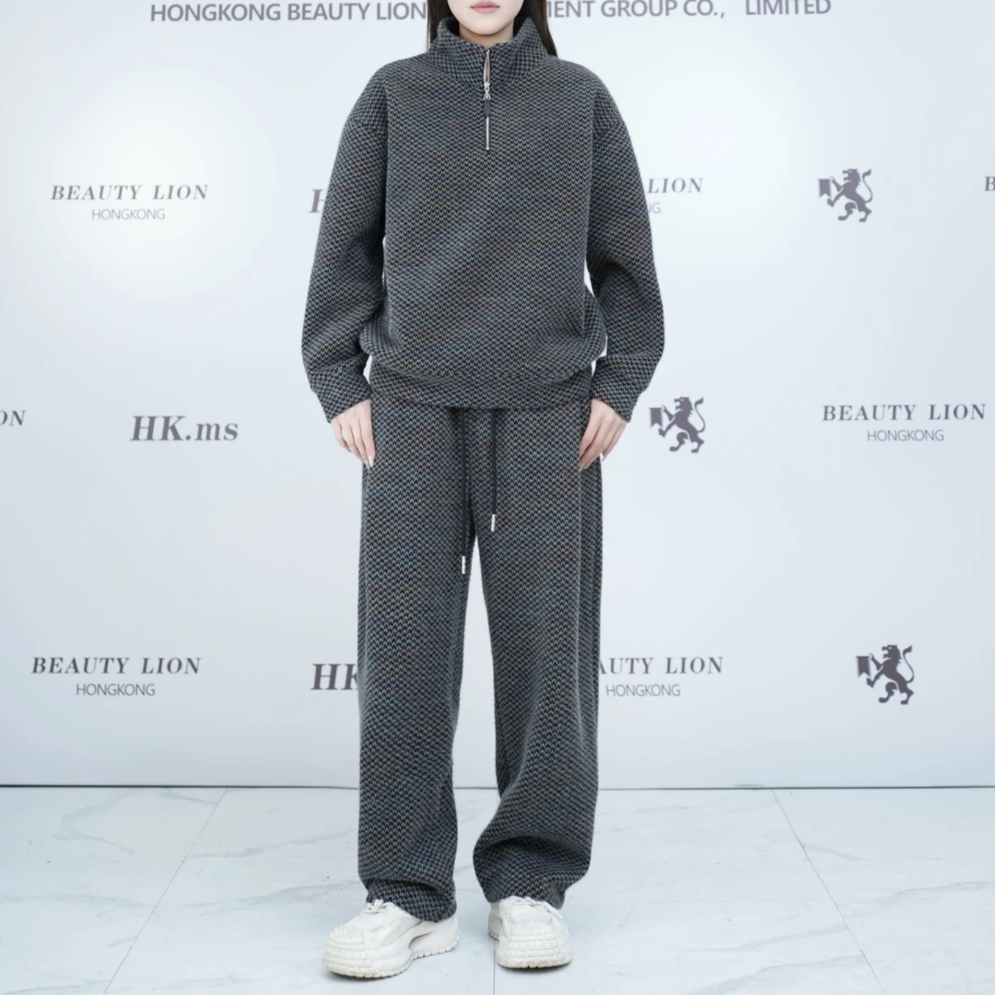 冬季老钱风千鸟格纹套装男潮牌时尚休闲半拉链卫衣长裤运动两件套