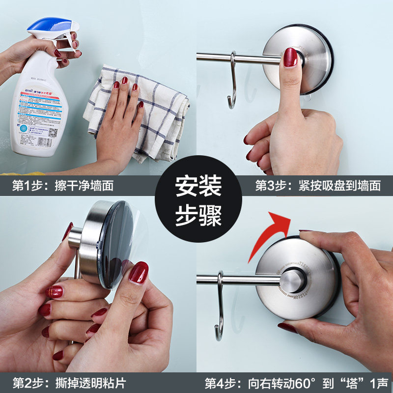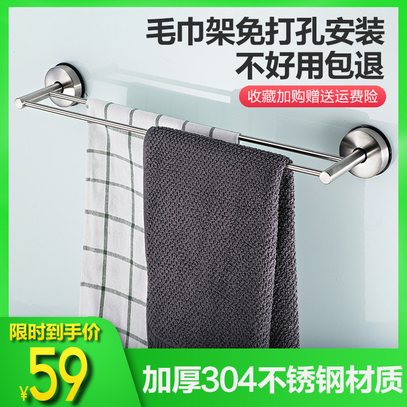 毛巾架免打孔卫生间304不锈钢浴室浴巾架吸盘毛巾杆加长单杆双杆