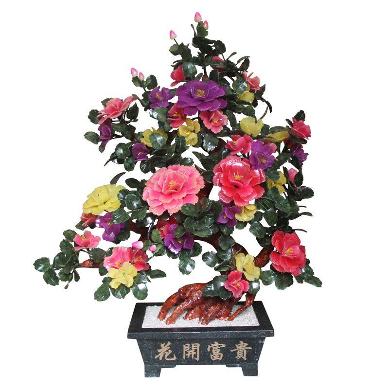 玉石雕刻牡丹花盆景客厅家居饰品玉器大堂工艺品落地新公司大摆件