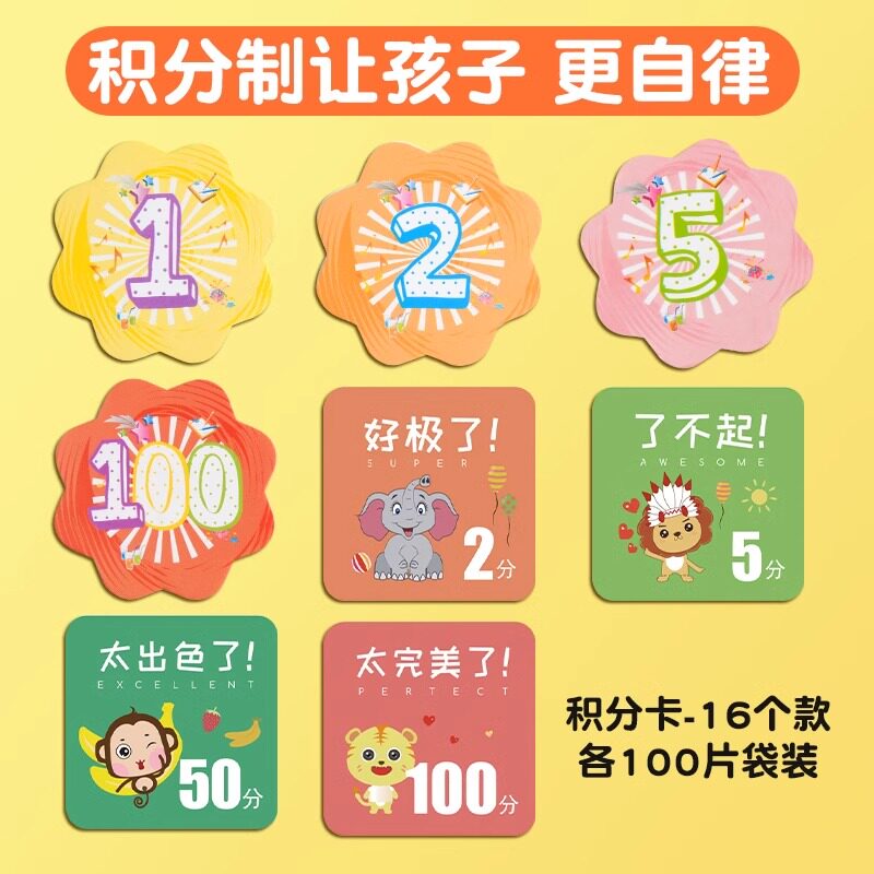 积分卡奖励卡小学幼儿园奖励孩子的记分卡家庭学习成长自律激励卡片家用小朋友儿童好习惯养成积分兑换表扬卡