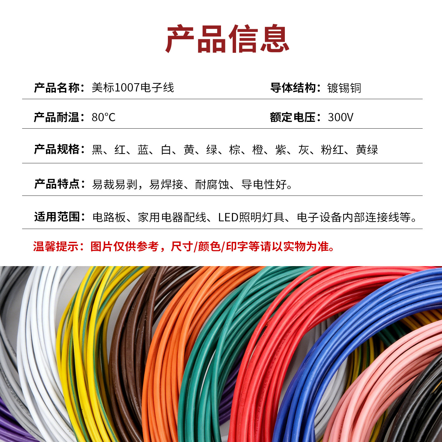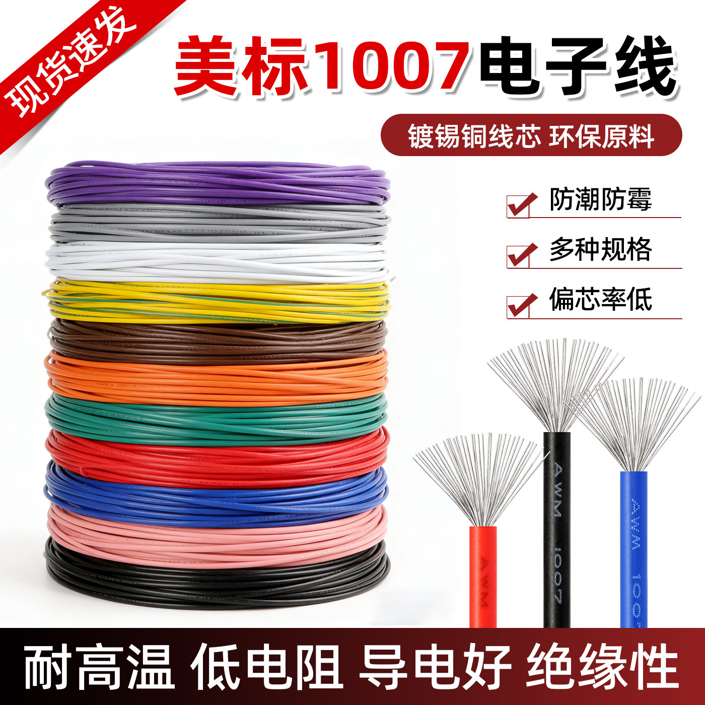 1007电子线16 18 20 22 24 26 28 30awg环保电线镀锡铜连接导线