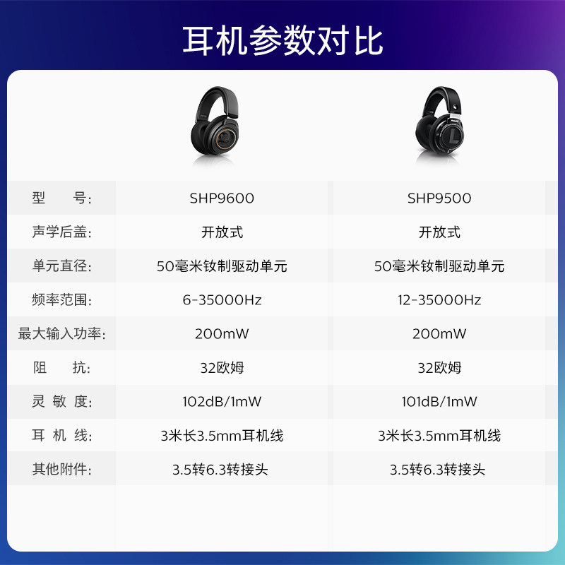 飞利浦SHP9600有线hifi耳机头戴式音乐游戏电脑有线shp9500升级款