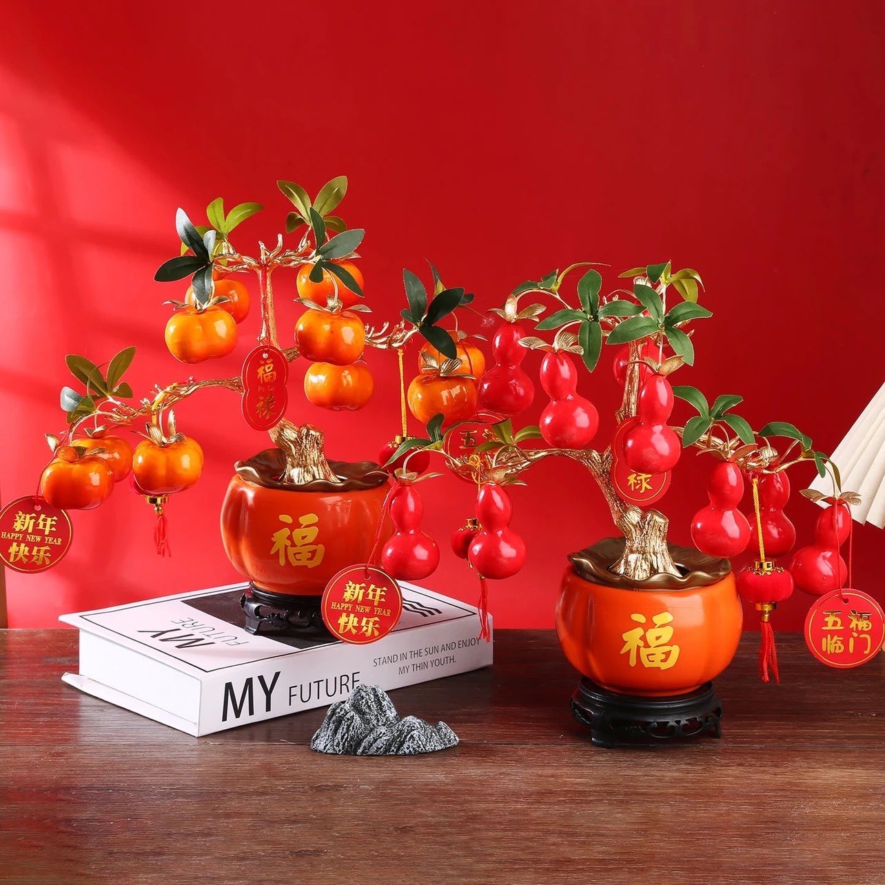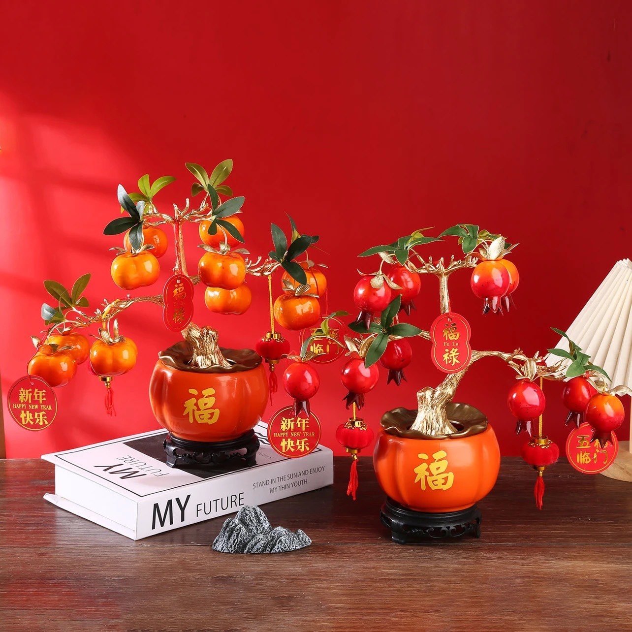 家居饰品摆件元旦春节新年柿子摆件客厅家居饰品喜庆摆件新款仿真