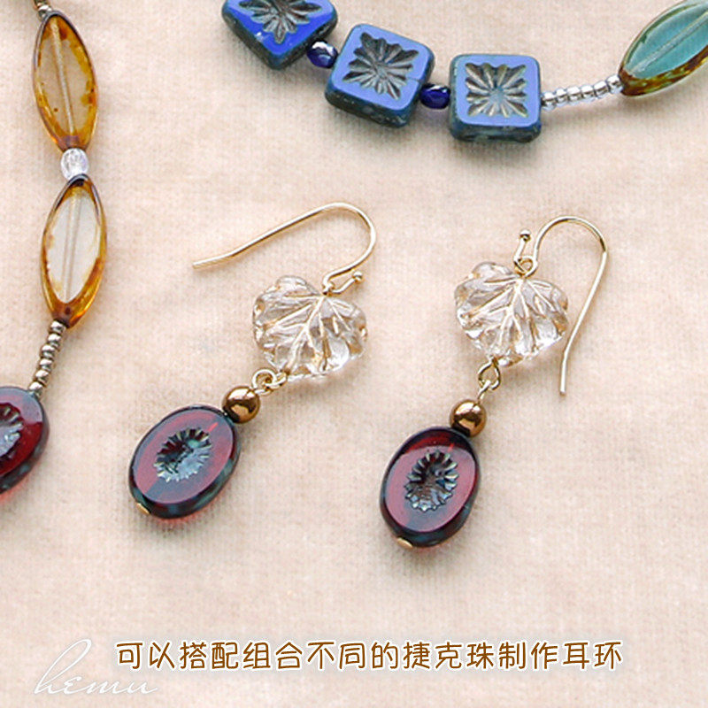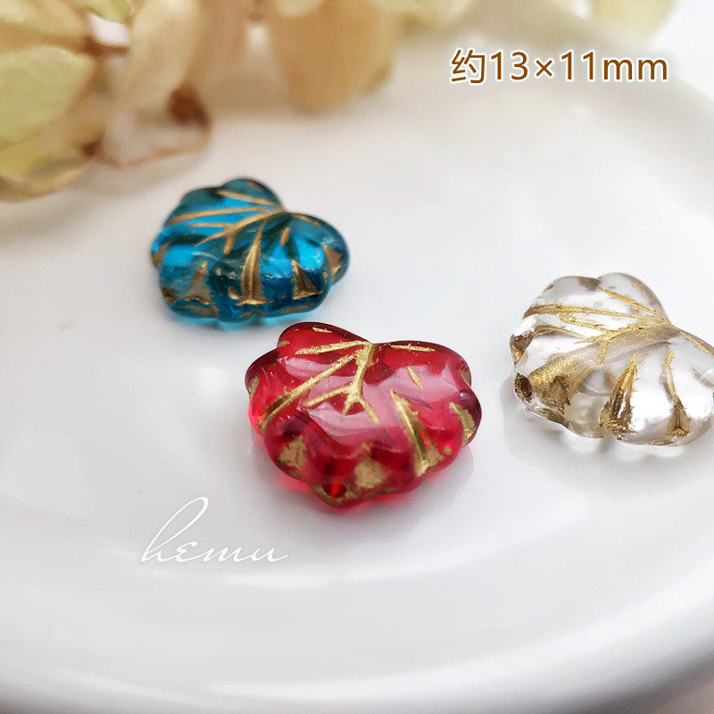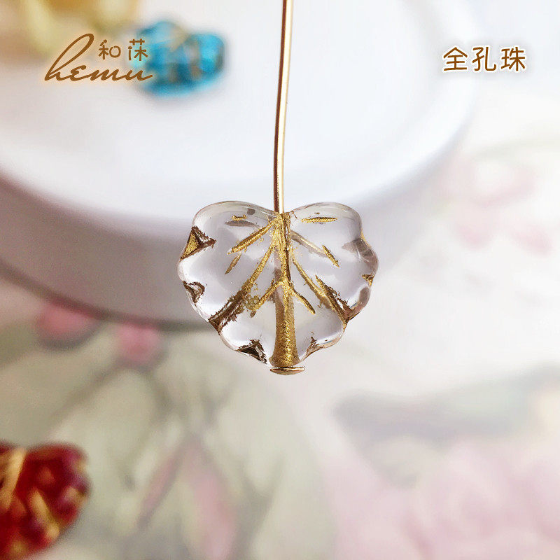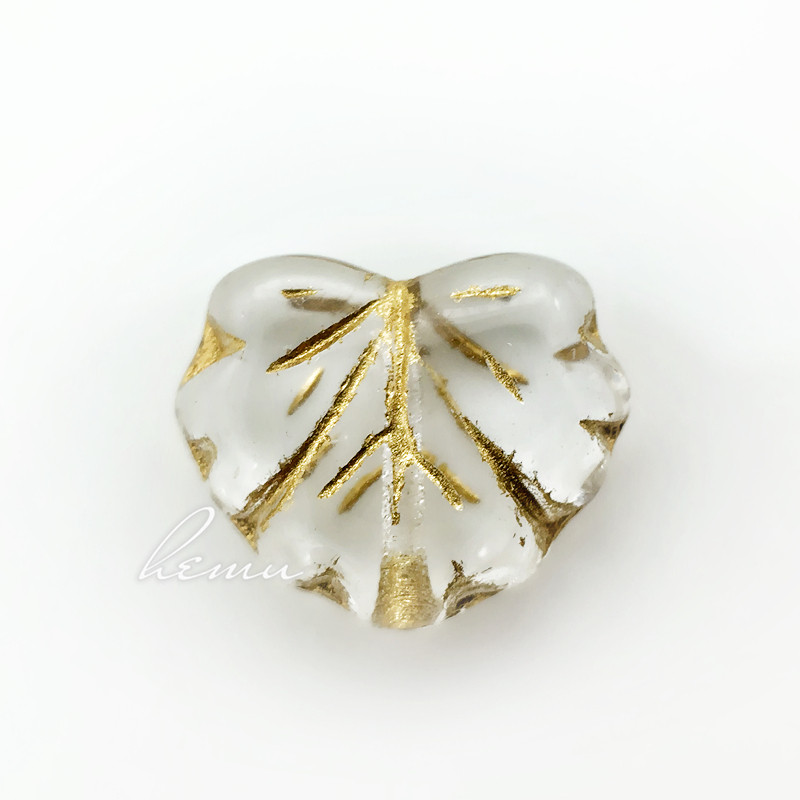 捷克进口 透明双面描金心形叶子珠葡萄叶枫叶全孔串珠diy饰品配件