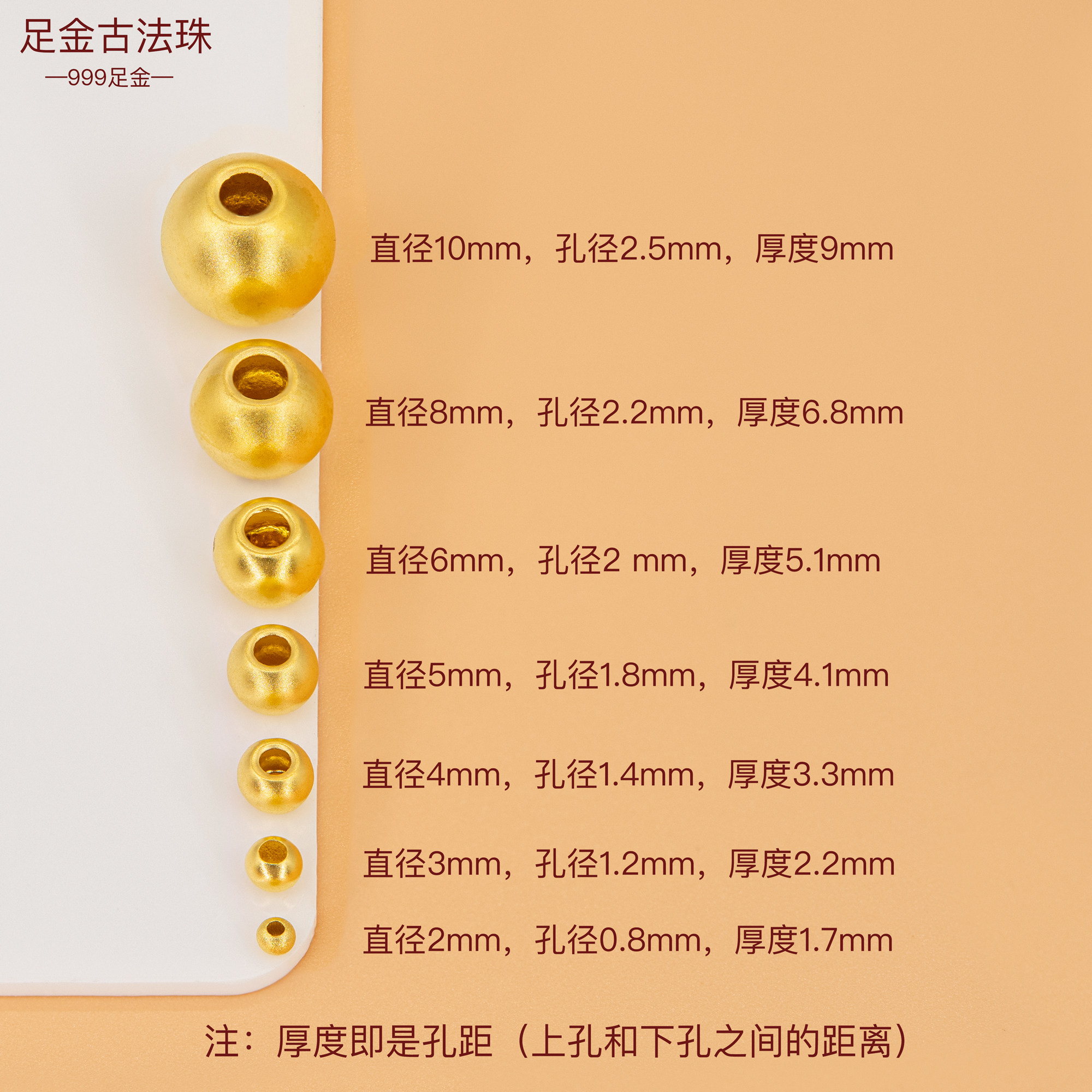 足金999古法金珠 3D硬金小金珠转运珠diy黄金散珠手链隔珠手串珠
