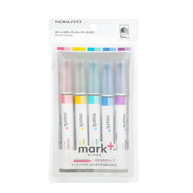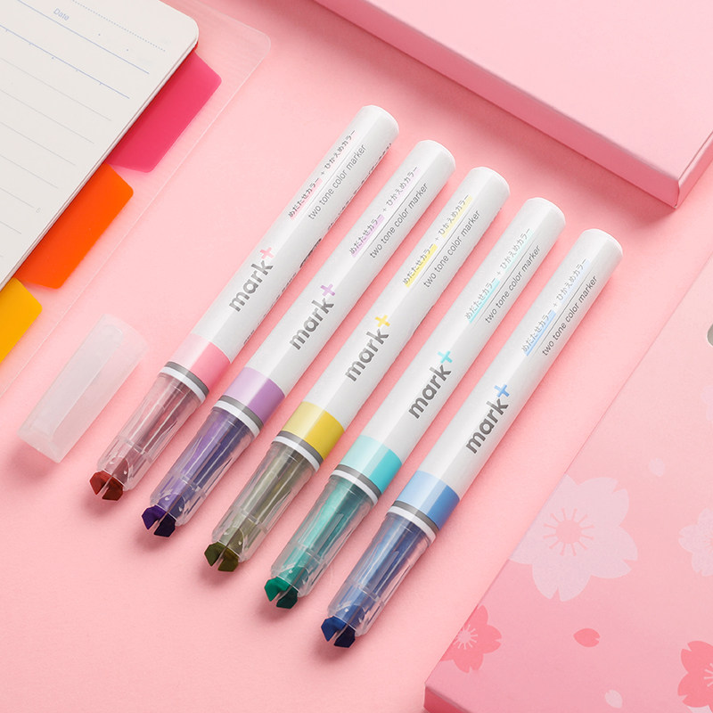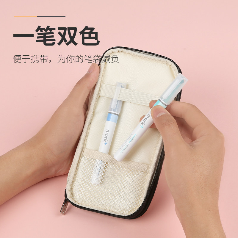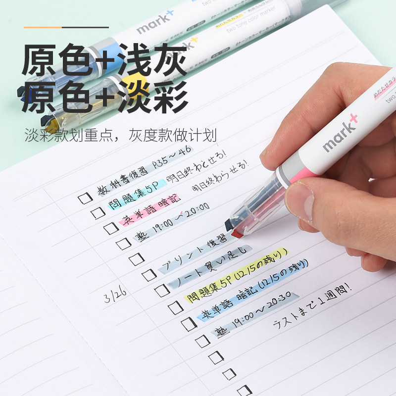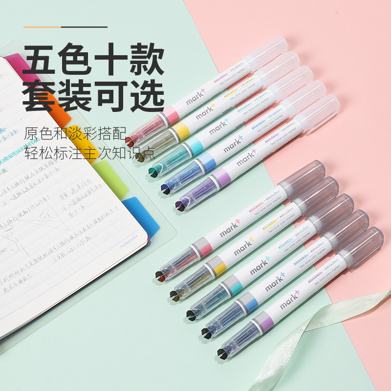 一笔双色 标记轻松! 国誉Mark+马克笔淡色系荧光笔学生用甲壳虫标记笔彩色划重点大容量灰色黄色绿色mark