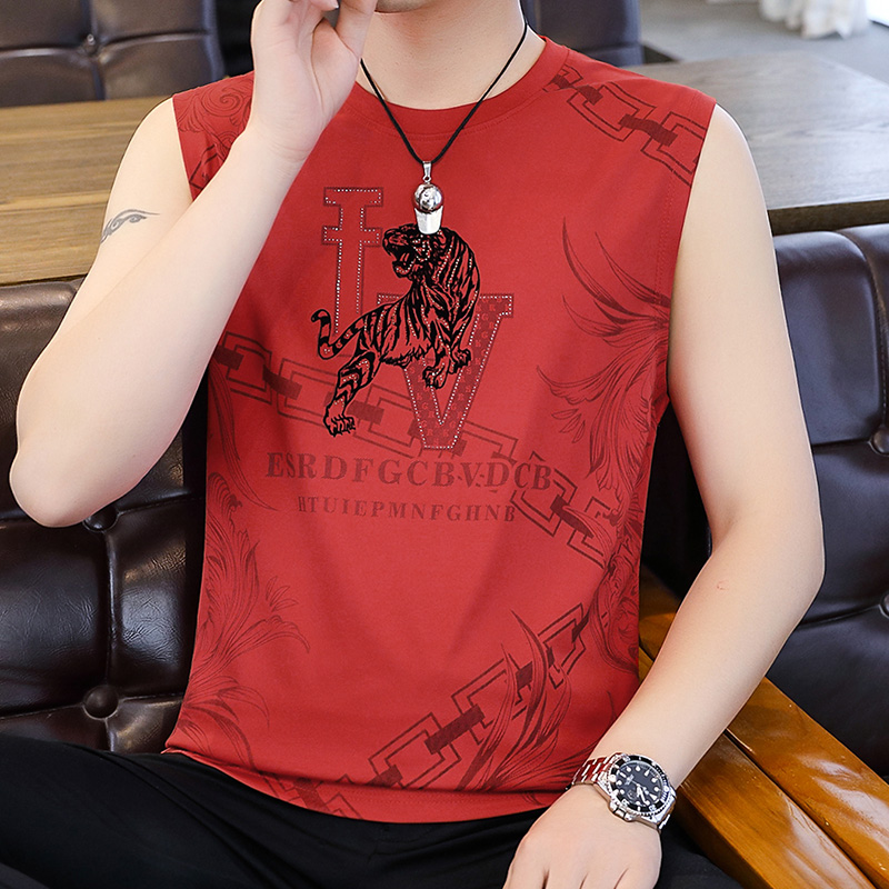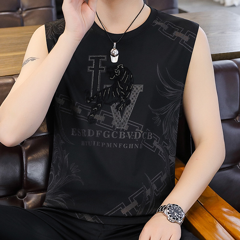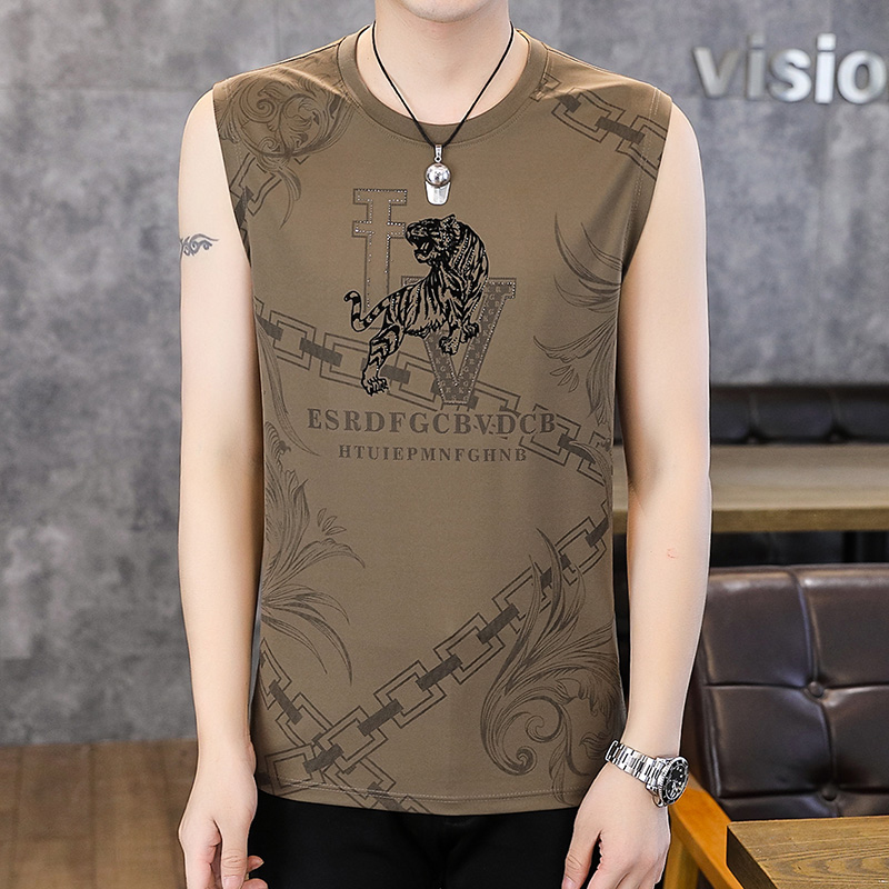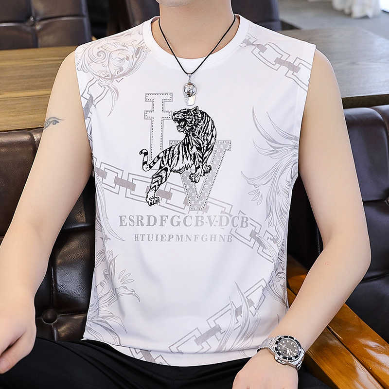 高档男士冰丝提花背心2024夏季新款加肥加大码速干男装无袖T恤衫