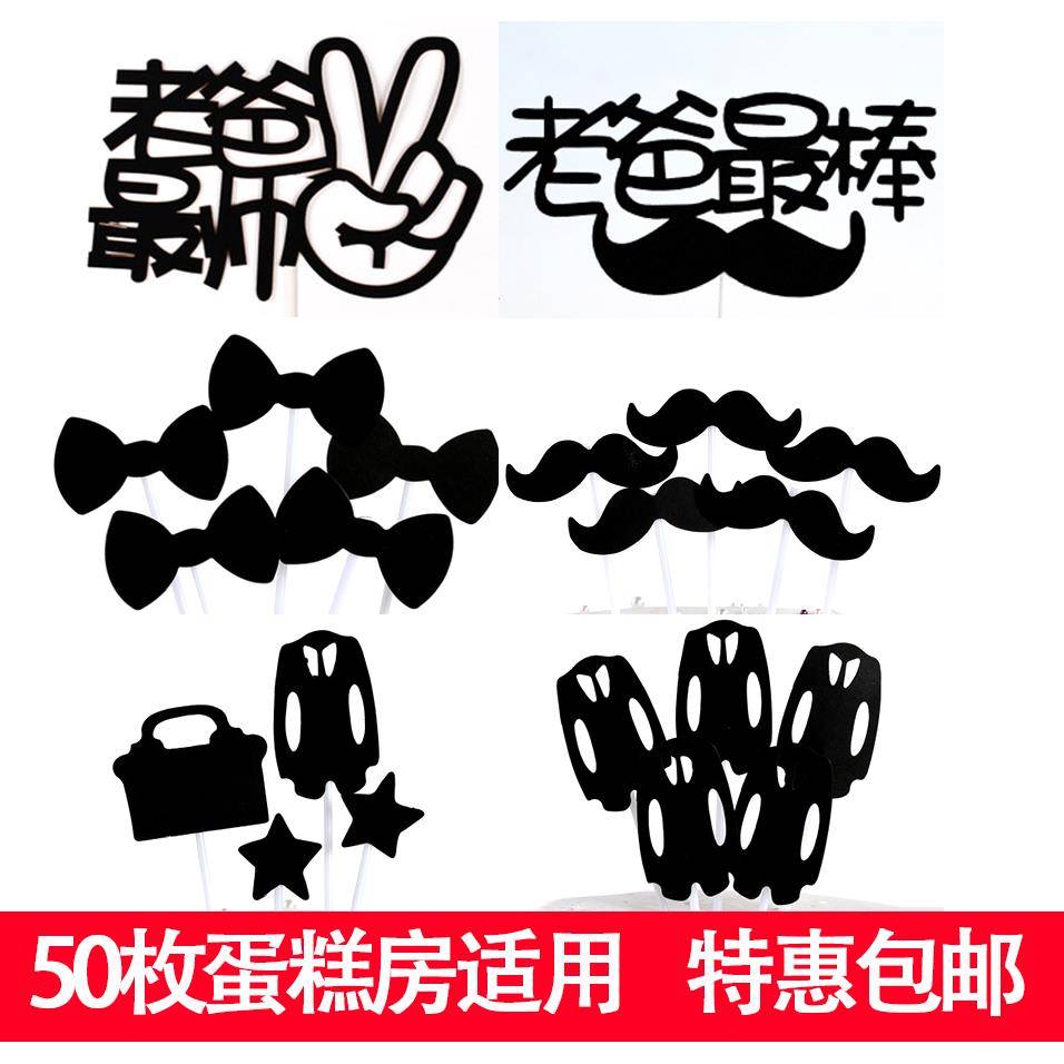 父亲节蛋糕装饰插件节庆用品父亲节礼品烘焙蛋糕父亲节庆祝 黑色