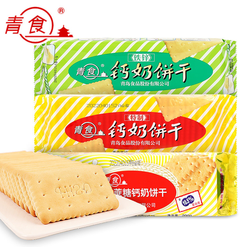 青食钙奶饼干225g大包精制休闲怀旧老式韧性饼干早餐山东青岛特产