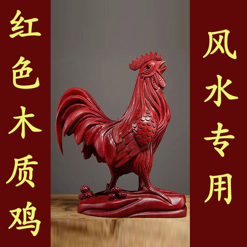 红花梨木雕大公鸡摆件木质动物十二生肖鸡家居电视柜装饰品工艺品