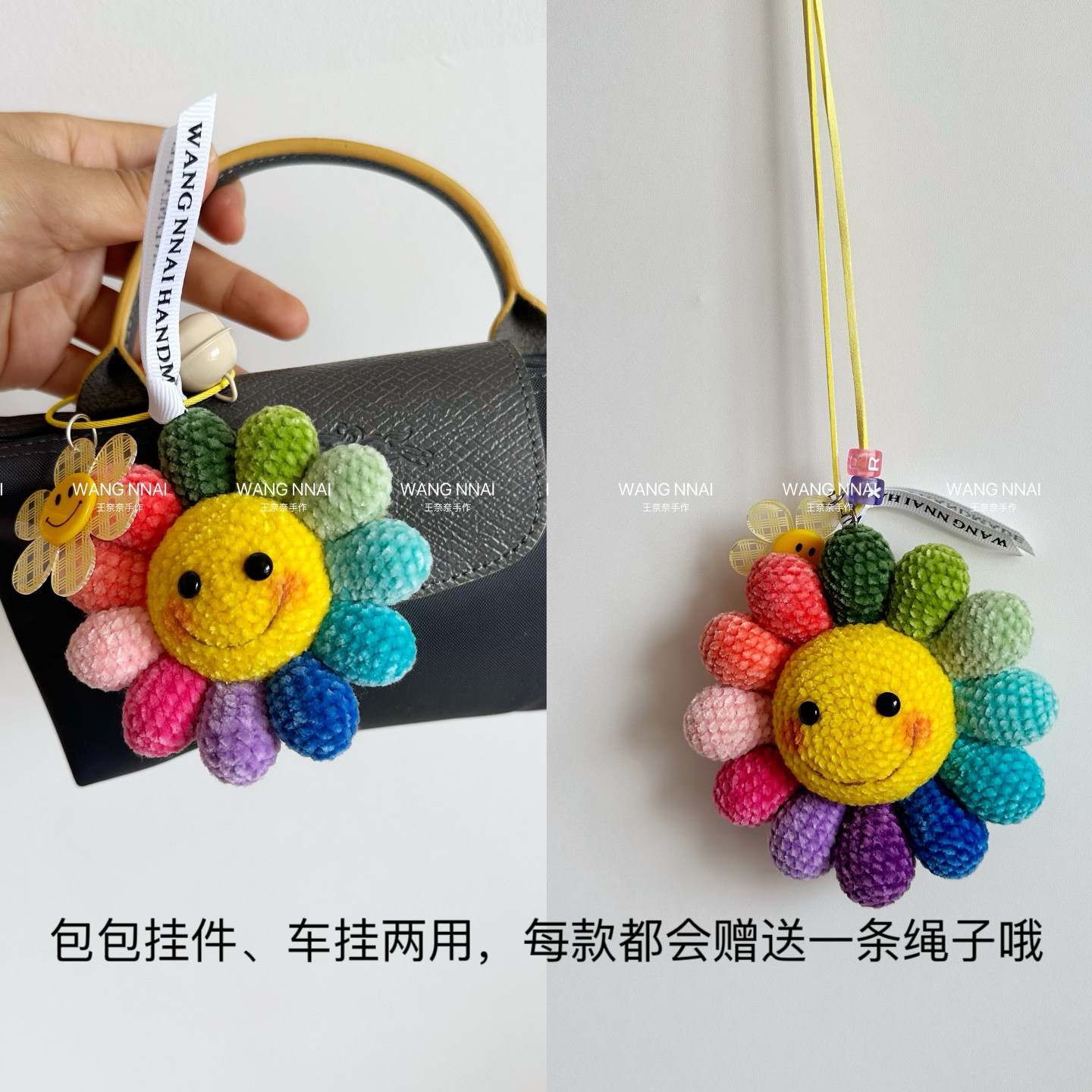 【成品】太阳花挂件汽车内饰吊坠毛线手工编织钥匙链笑脸治愈系
