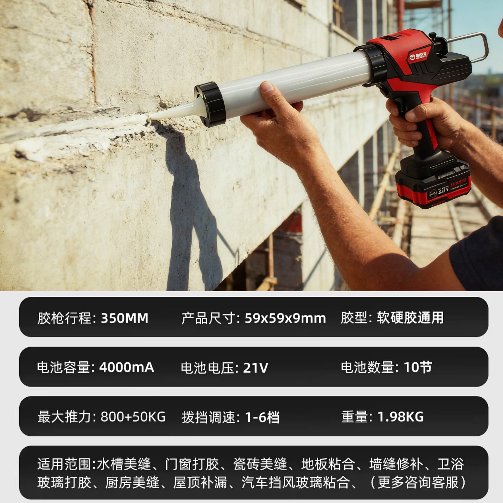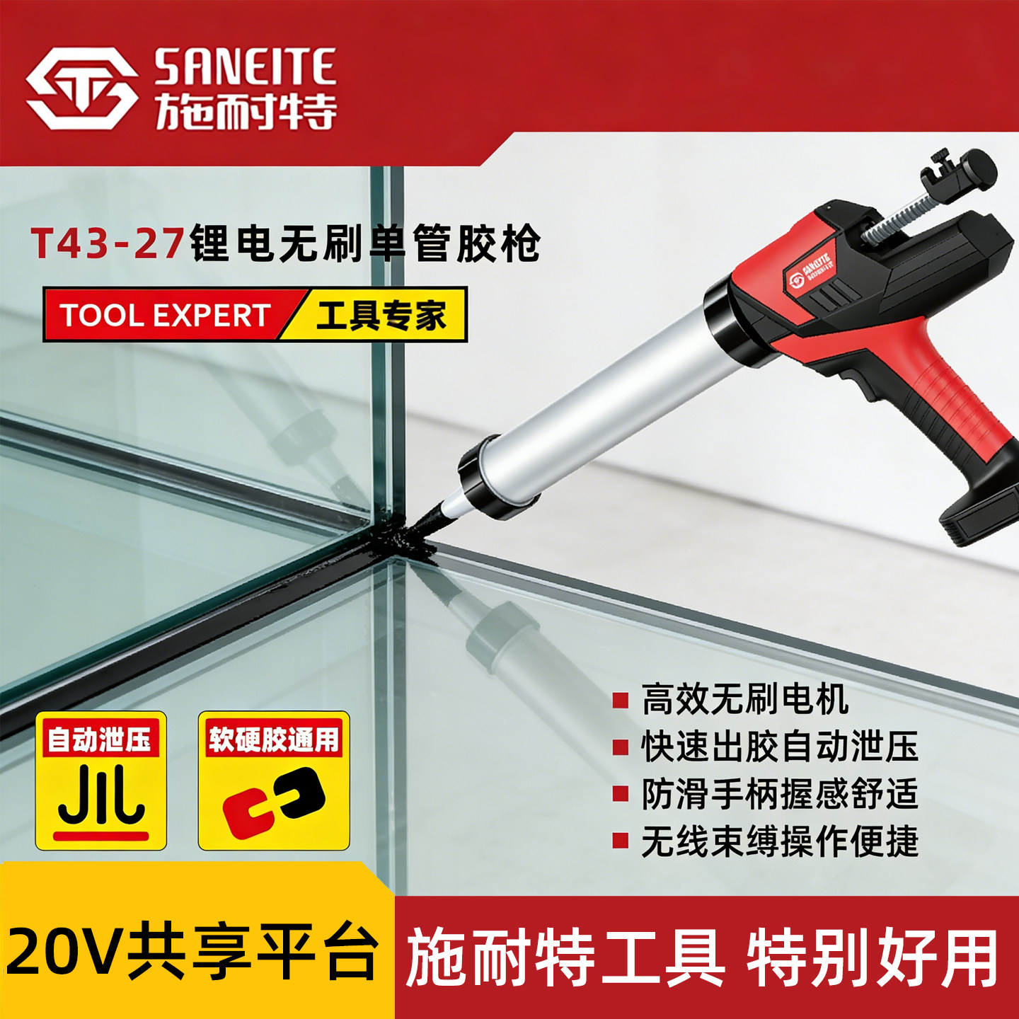 施耐特T43-27锂电无刷单管胶电动枪玻璃胶枪无极调速单管打胶机