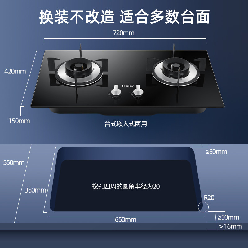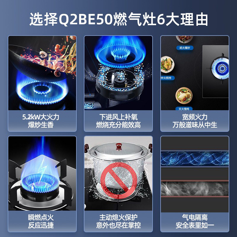 海尔5.2KW燃气灶钢化玻璃面板家用大火力台嵌两用熄火保护Q2BE50