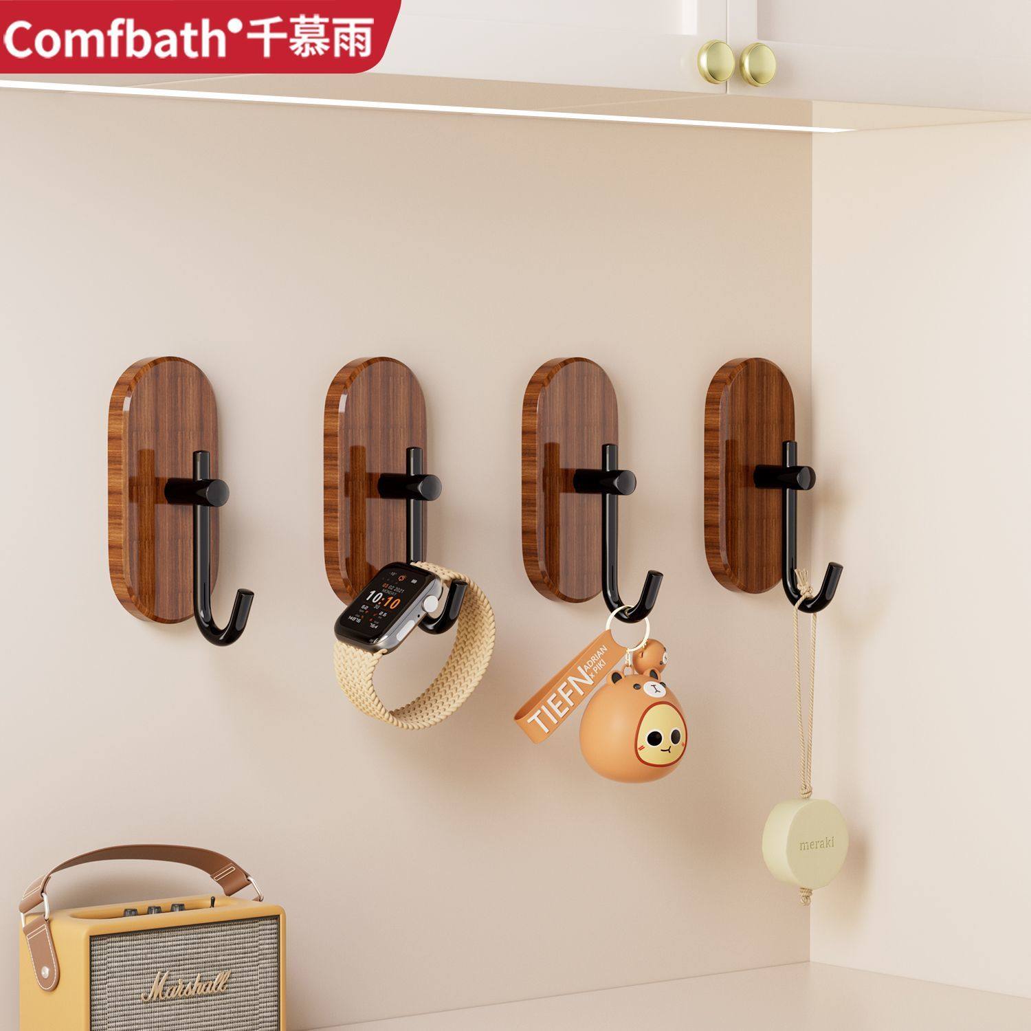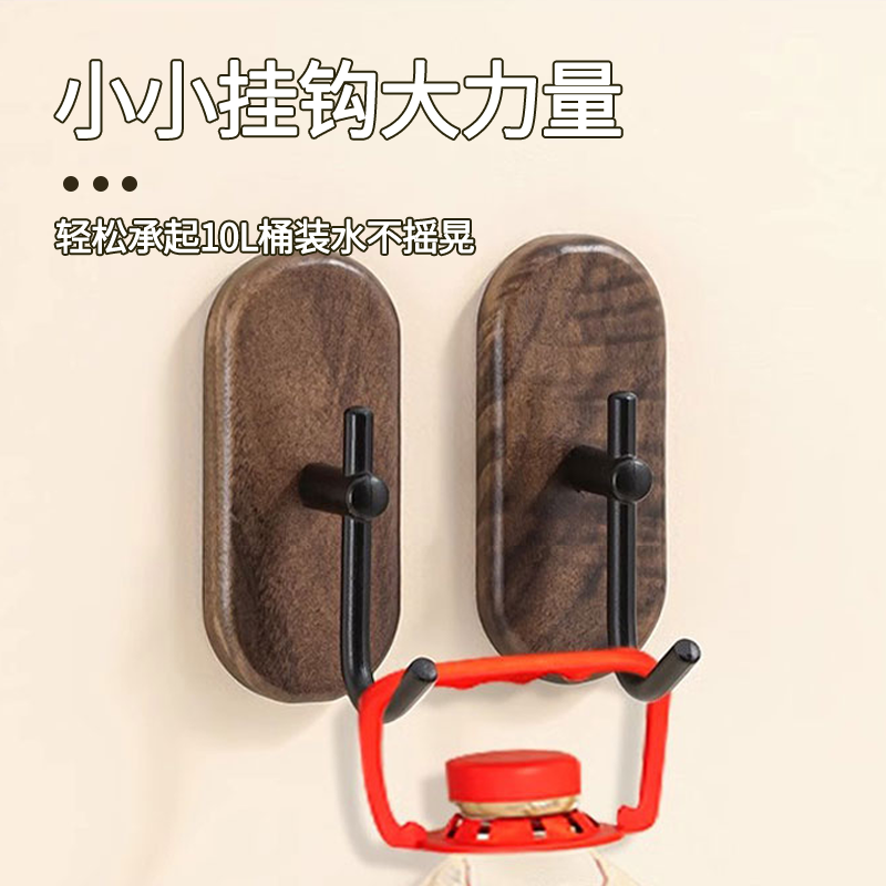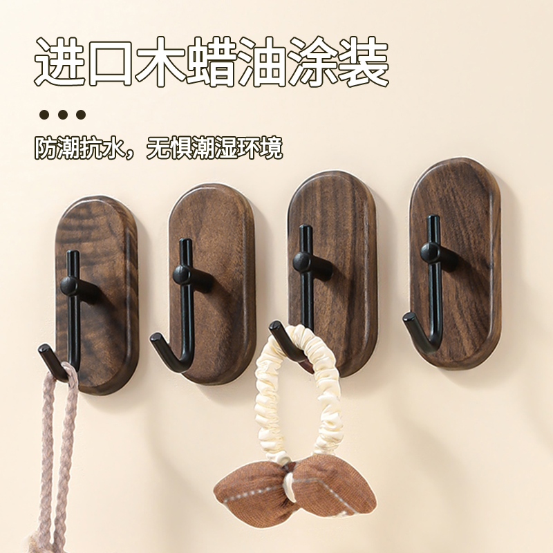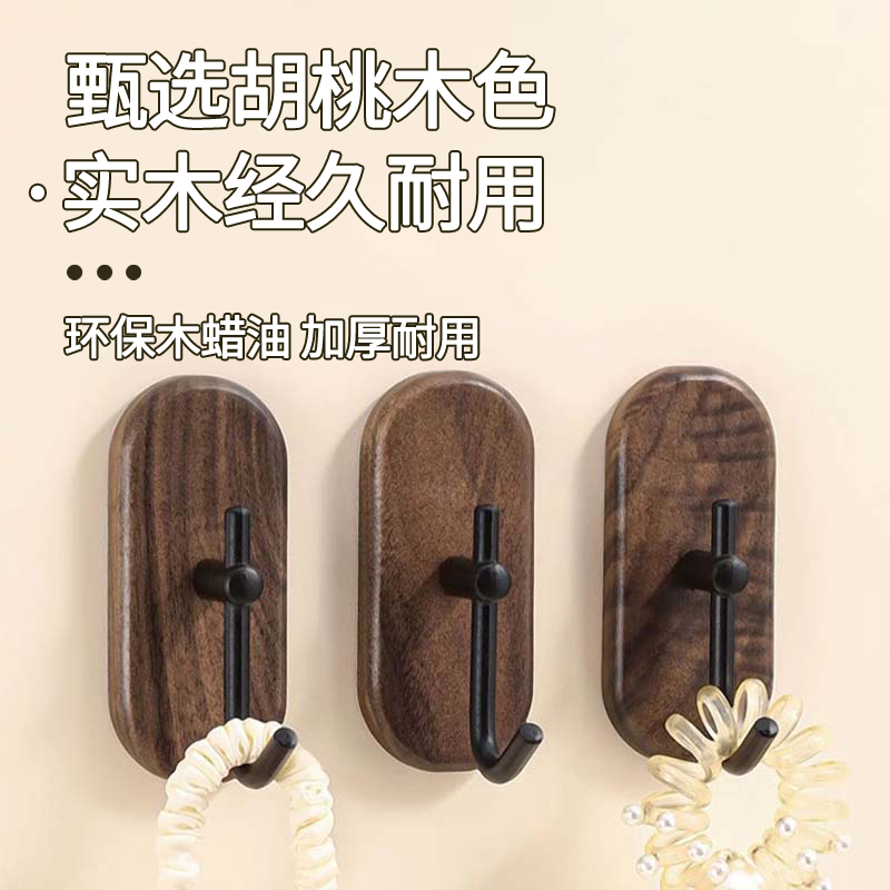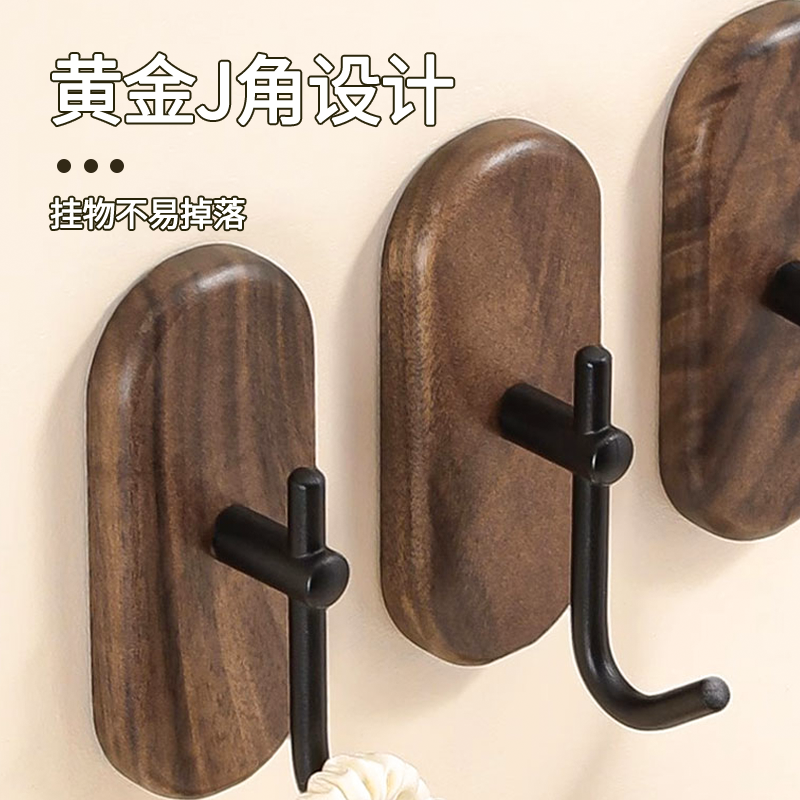 千慕雨胡桃木色实木挂钩强力承重浴室厨房门后玄关免打孔衣帽粘钩