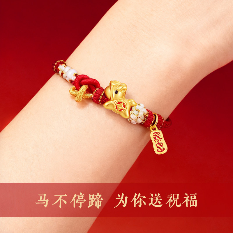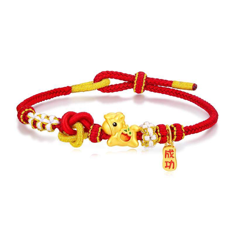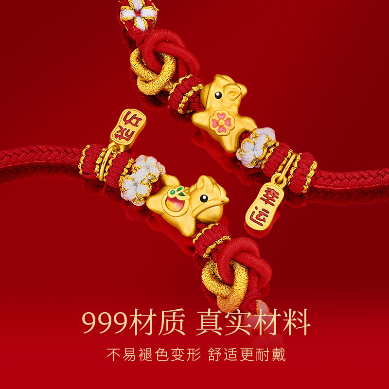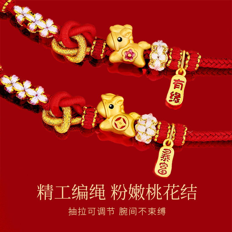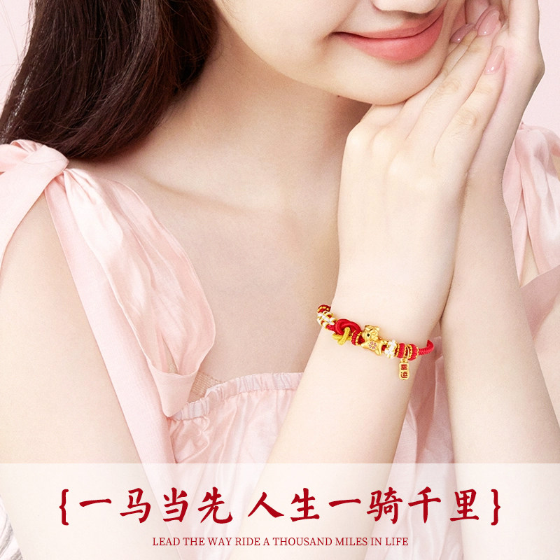 萌马】中国黄金珍尚银足银手链女款本命年红手绳情人节礼物送女友