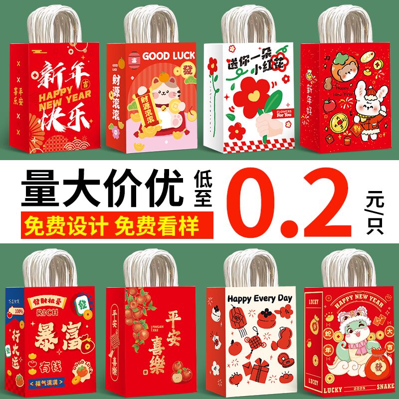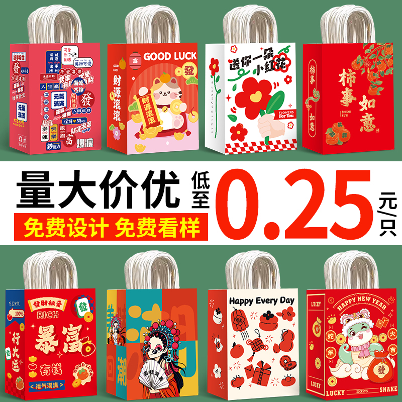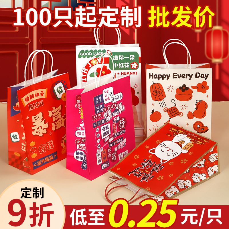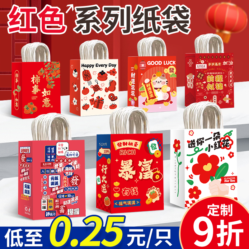 新年红色礼袋牛皮纸袋手提袋春节送礼购物袋元旦喜庆伴手礼包装袋