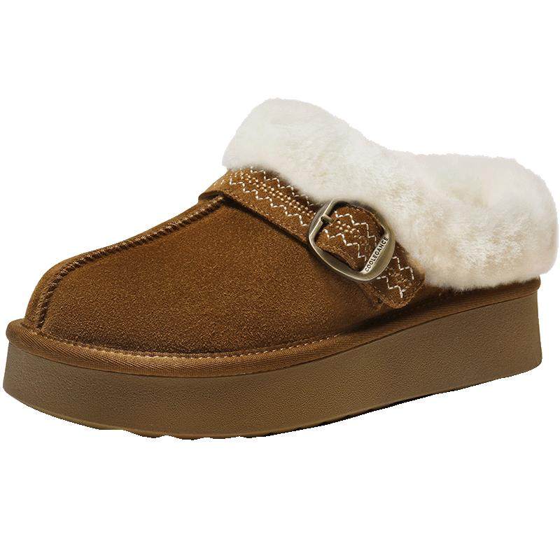 百丽保暖毛毛棉拖鞋女冬季新款雪地靴可外穿勃肯鞋F3D1DDH5