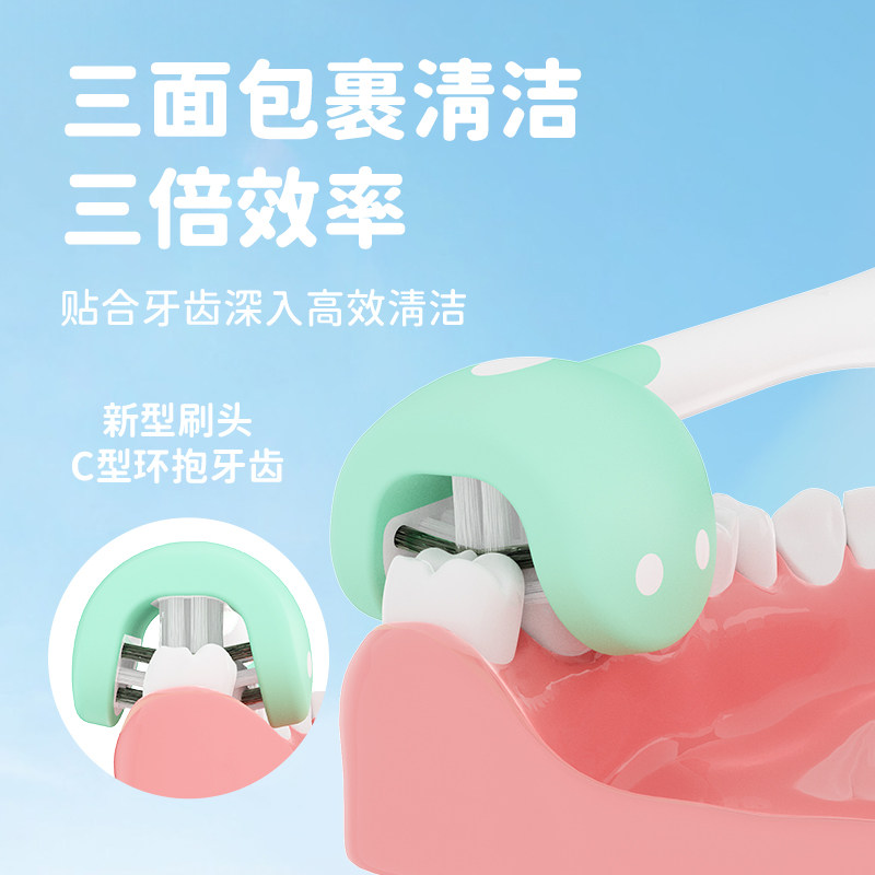 DYCROL戴可儿童三面牙刷软毛宝宝3到12岁婴儿u型3d换牙期小孩