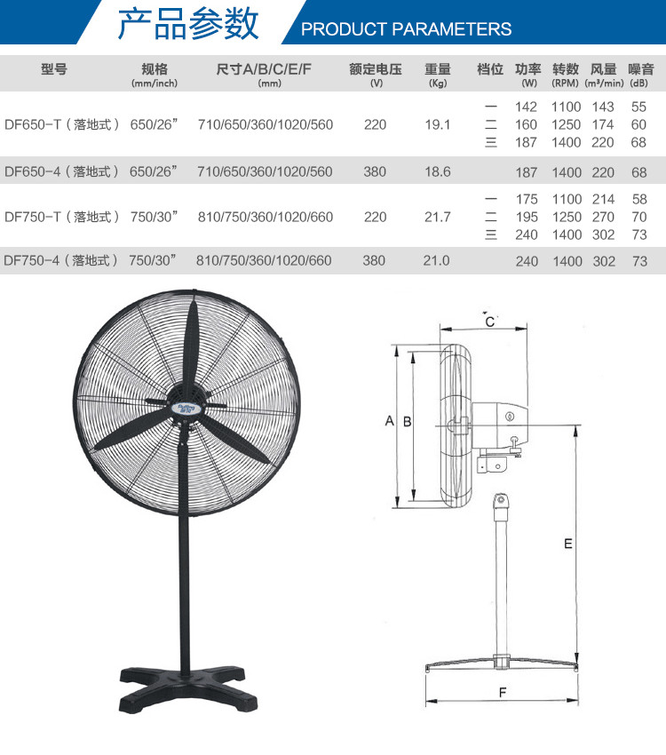 德通普风大功率风扇工业强力商用大风扇纯铜电风扇落地扇工厂车间