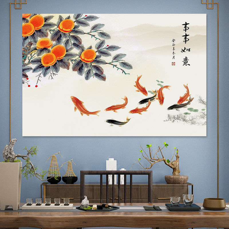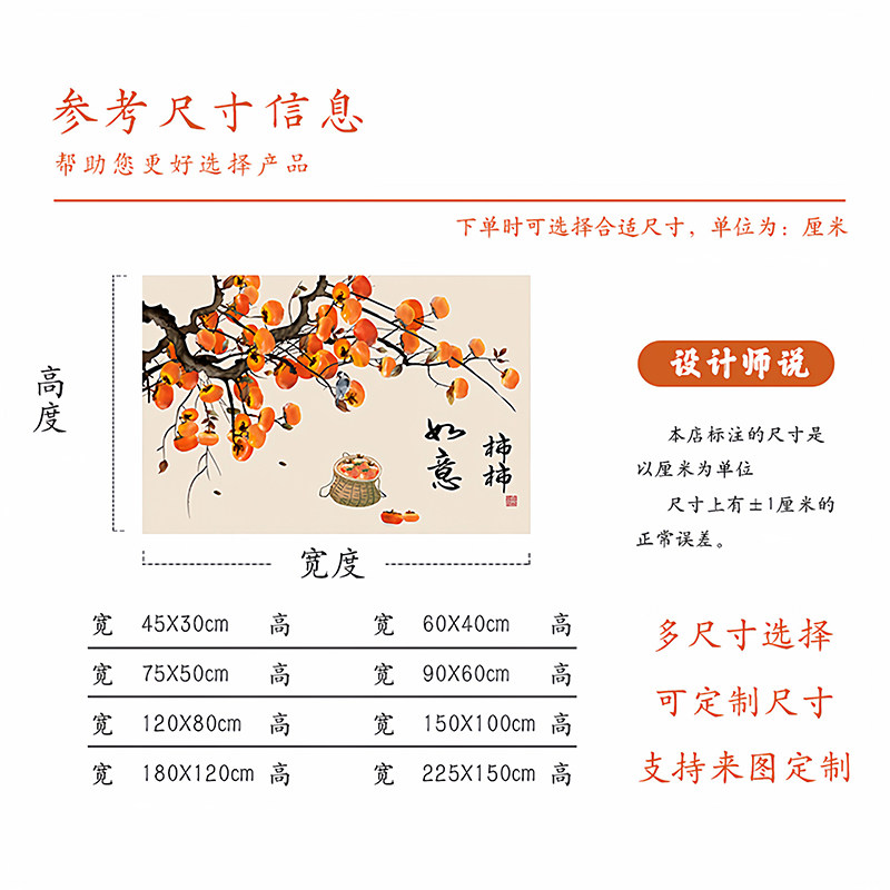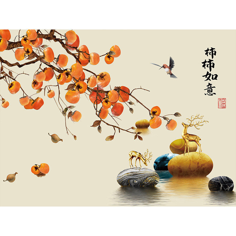 新中式柿柿如意贴画自粘客厅餐厅电表箱装饰画卧室房间背景墙壁纸