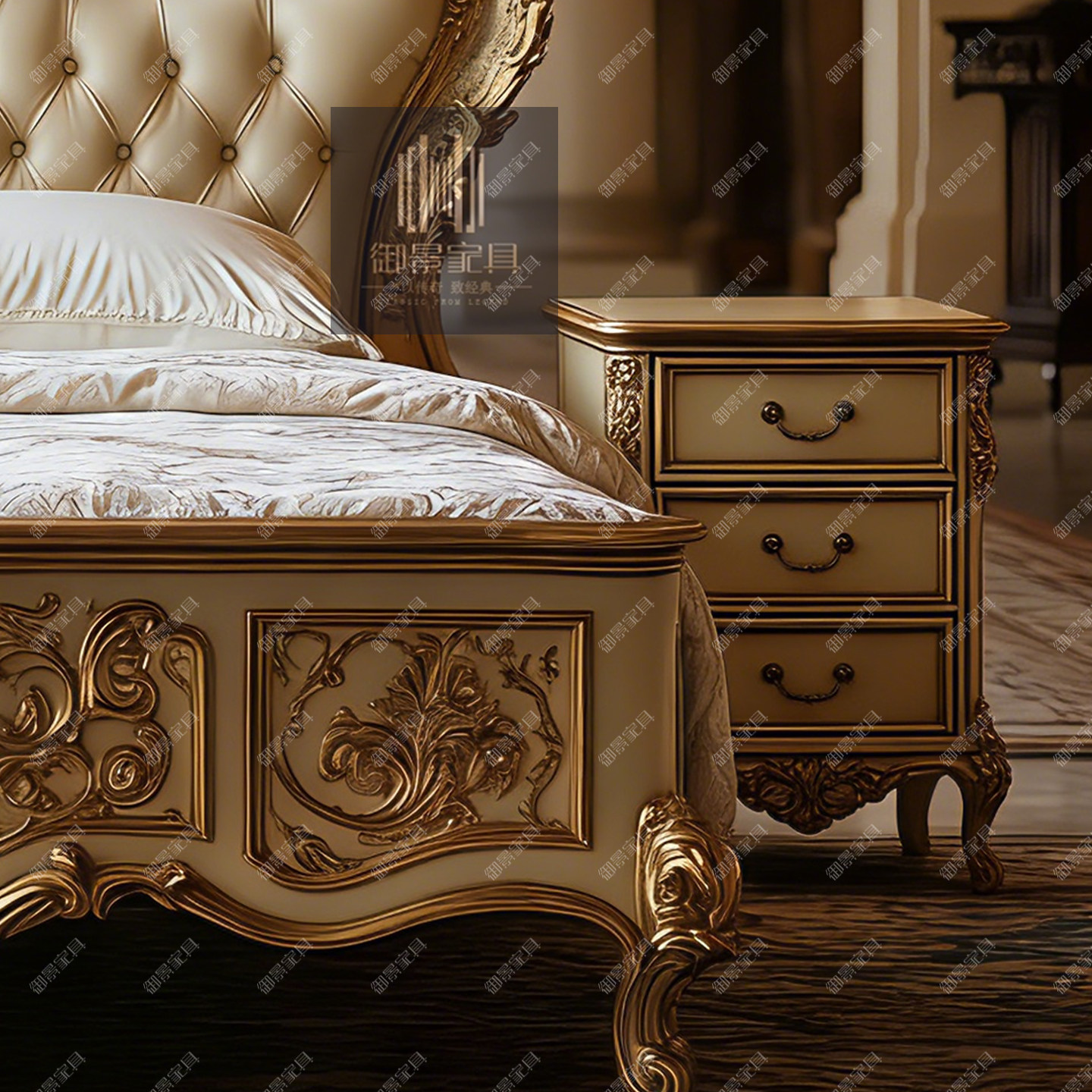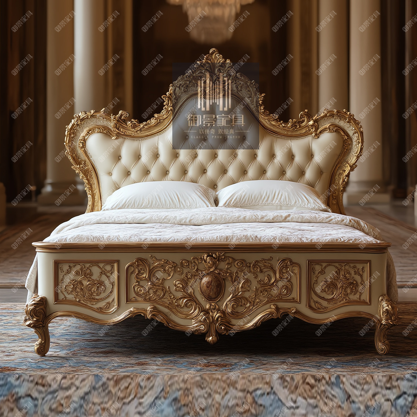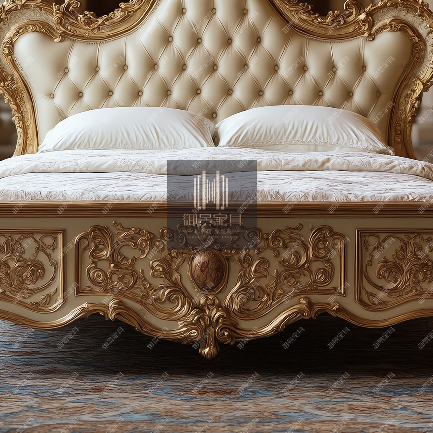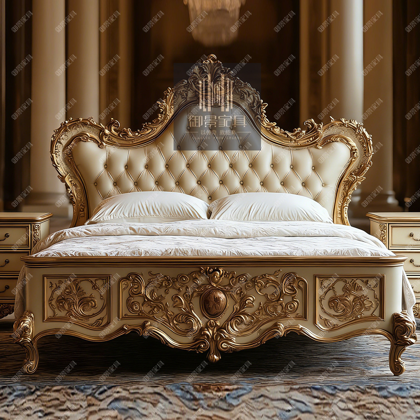 2米2.2米1.8米主卧大床法式巴洛克真皮床主卧婚床欧式床住宅家具