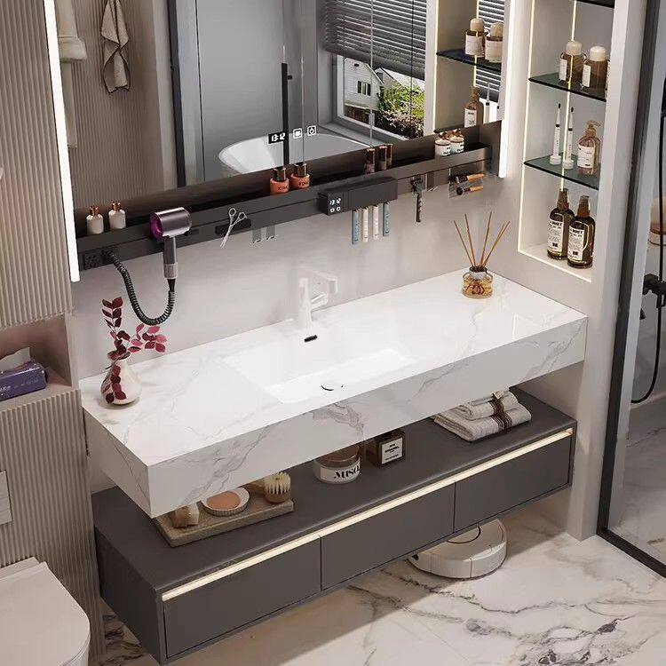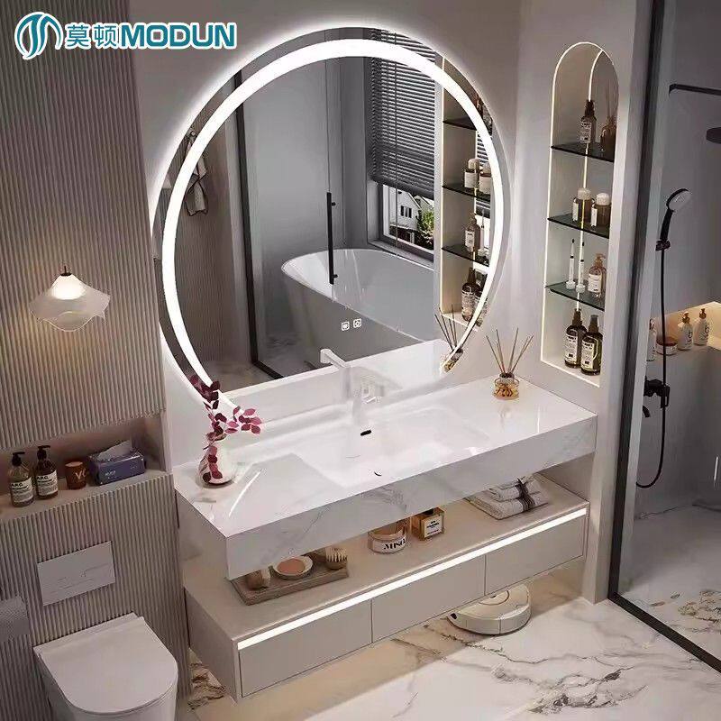酒店轻奢岩板陶瓷无缝一体盆浴室柜组合卫生间洗漱盆洗脸洗手