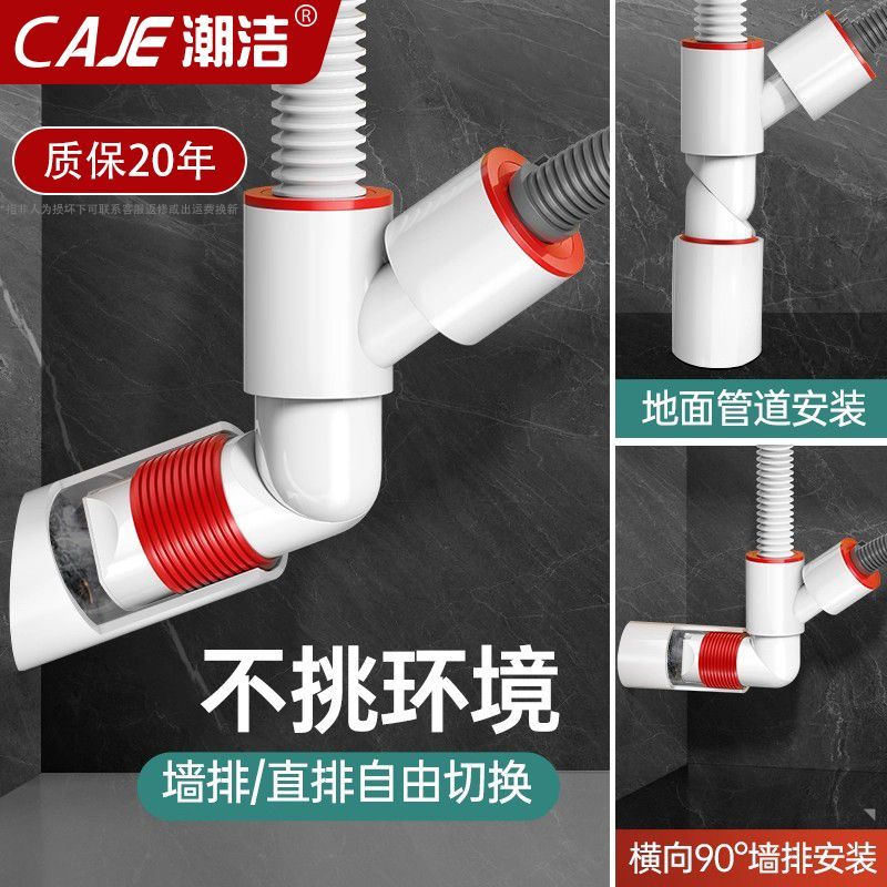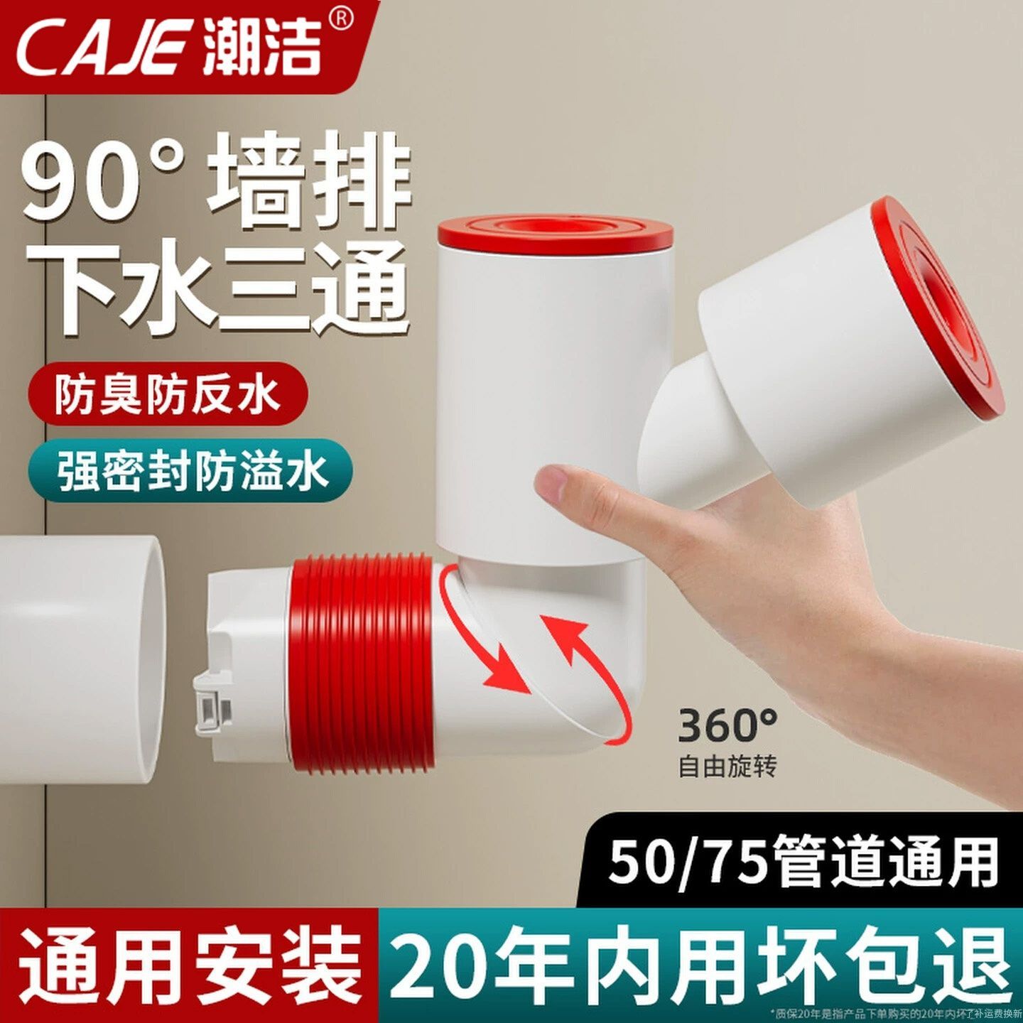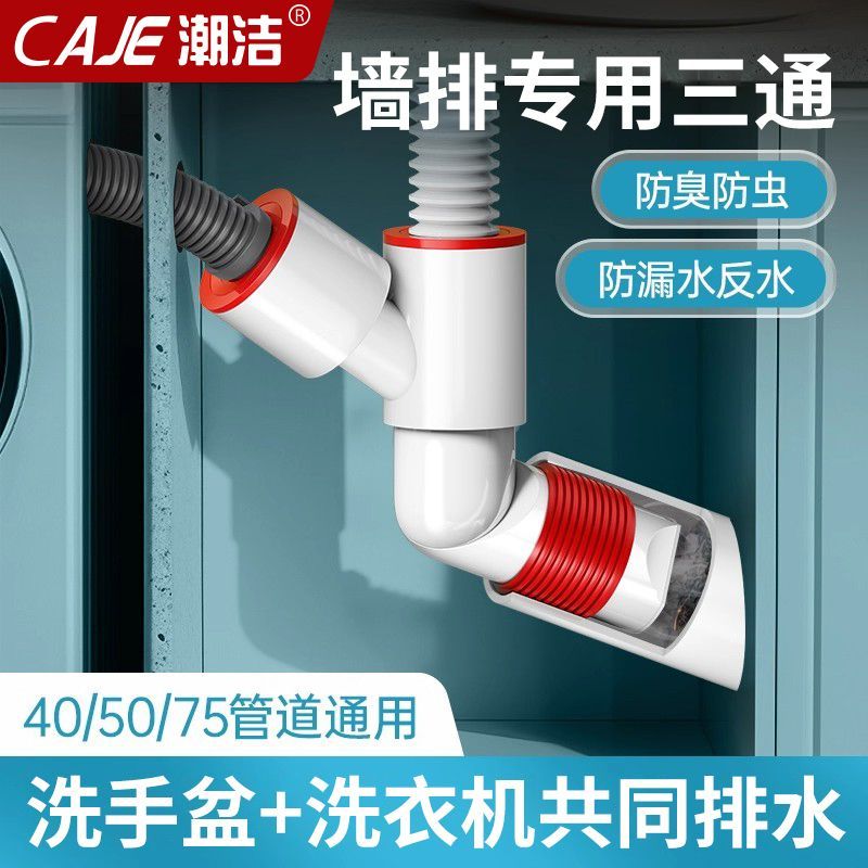 潮洁厨房洗菜池排水管道三头通墙排下水三通防臭防溢水专用接头