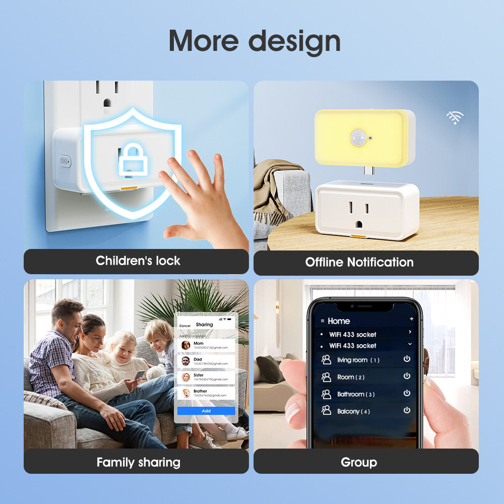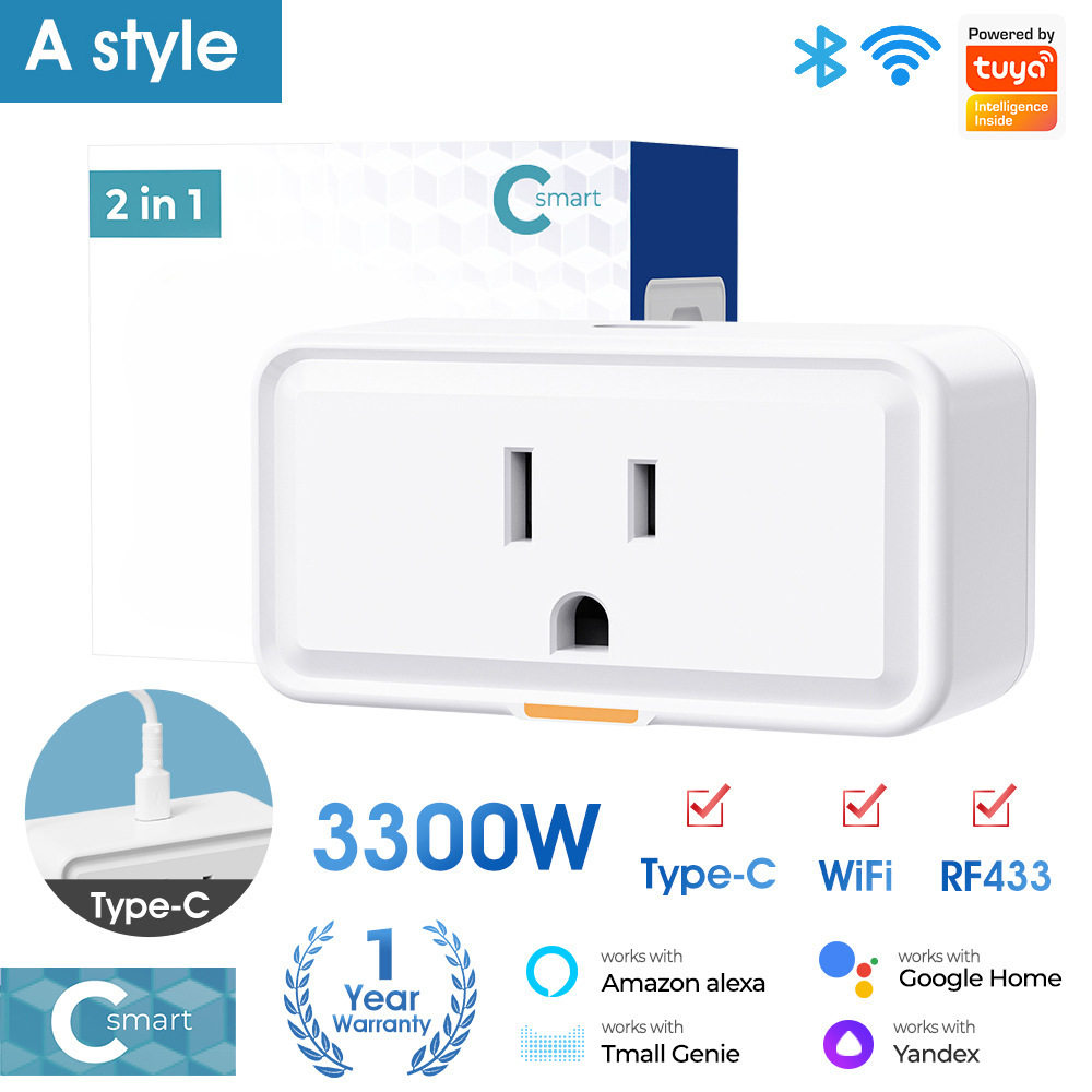 涂鸦智能家居WIFI RF433美规插座Typec遥控APP语音控制插头开关