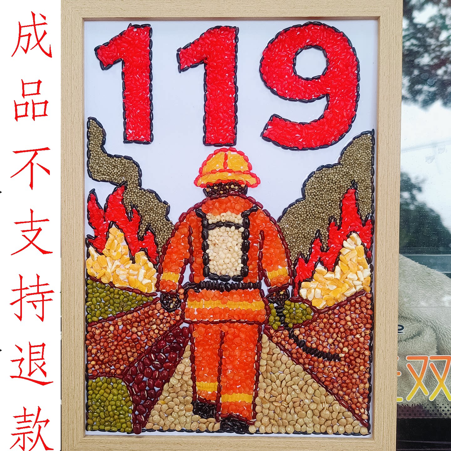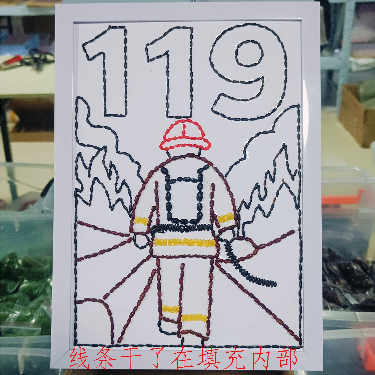 消防员119主题手工粘贴画儿童创意粘贴类益智玩具防火安全意识