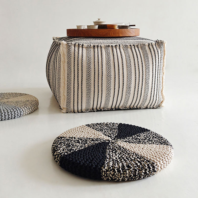 弋采全棉立体黑白灰条纹飘窗榻榻米懒人沙发坐墩脚踏换鞋脚凳茶几