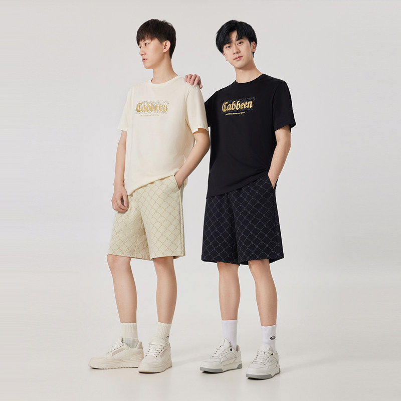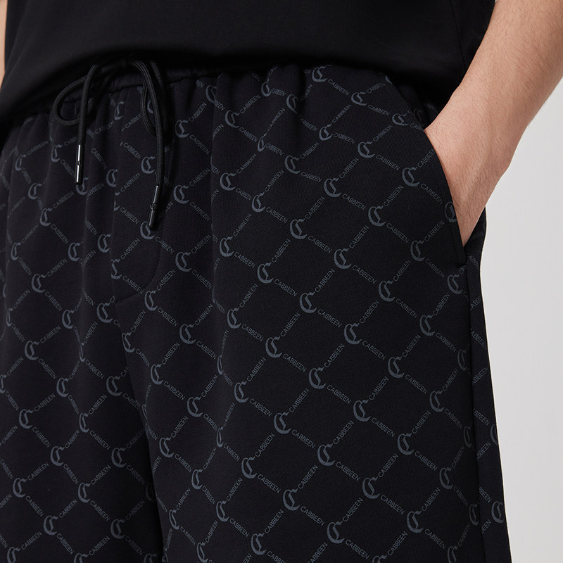 【老花满印】卡宾重磅宽松休闲短裤男装夏季透气潮牌纯棉五分裤子