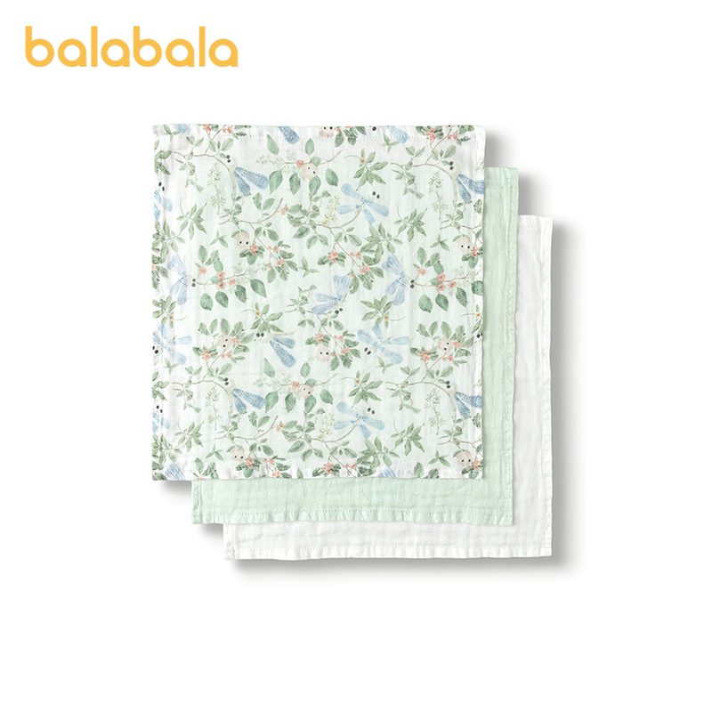 巴拉巴拉婴童用品宝宝纱布巾口水巾亲肤柔软三件装萌