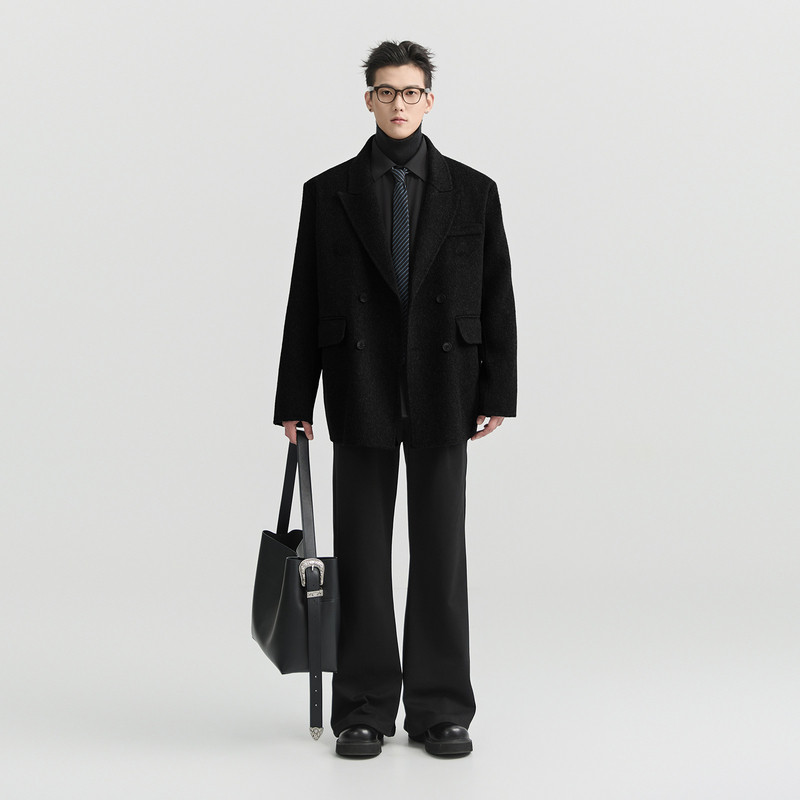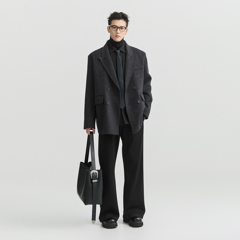 伯爵卓尔25秋冬季定织全羊毛双面呢大衣男士垫肩加厚呢子西装外套
